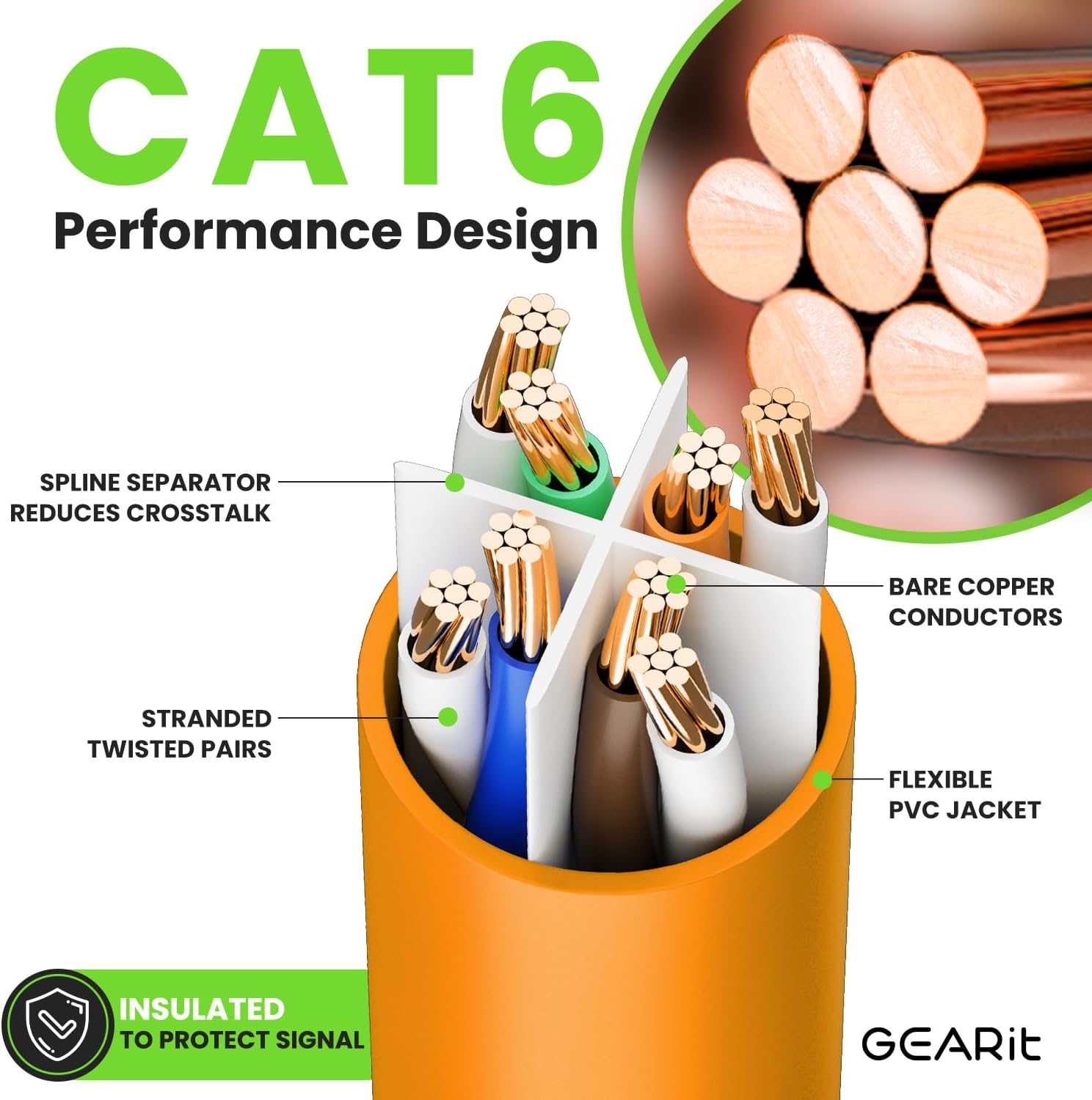 GearIT Cat 6 Ethernet Cable (10-Pack 7 Feet) Cat6 Network Patch, 10Gbps, RJ45, Snagless Cord, Gold-Plated Connectors, Internet for PC, TV, Tablet, Router, Printer, Servers, IT Data Center - Orange
