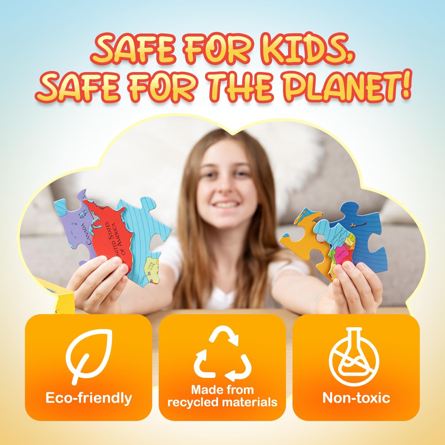 - PERFECT FOR FAMILY BONDING: These jigsaw puzzle of world map and country puzzles offer a great way for families to bond. Our kids map puzzle builds teamwork, communication, and quality time. Enjoy this educational geography for kids activity with the whole family with our world puzzle sets—a fun way to learn states and capitals for kids and adults.