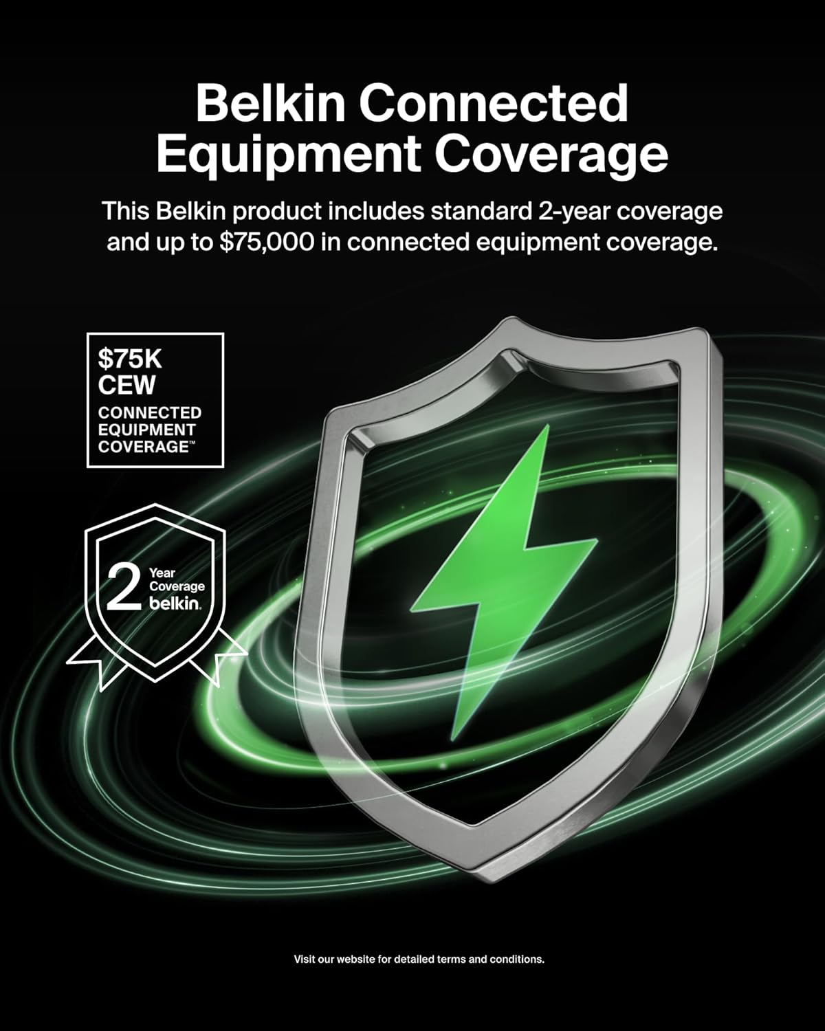 - RELIABLE SURGE PROTECTOR: Durably designed with a damage-resistant housing, each purchase is worry-free as it is protected by a $75,000 CEW (Connected Equipment Warranty). Shop with confidence and safeguard your devices.