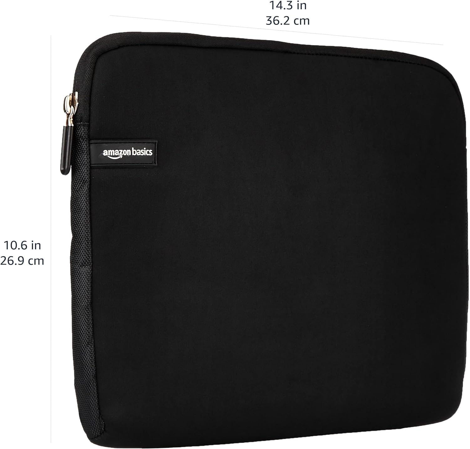 Amazon Basics 14 inch Laptop Sleeve, Compatible Protective Case with Zipper for MacBook Pro, MacBook Air - Black