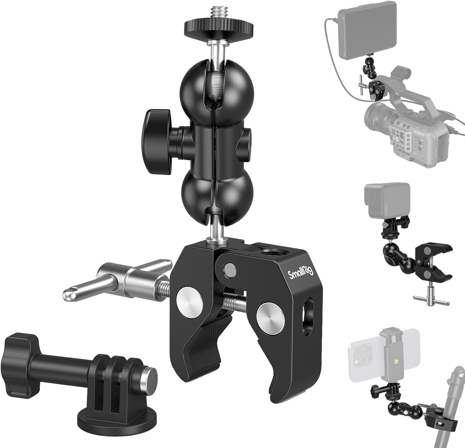 SMALLRIG Super Camera Clamp Mount, Double Ball Head Magic Arm Adapter, Fence/Desk/Tripod Mount for Monitor/Light/Camera, for Insta360, for Gopro