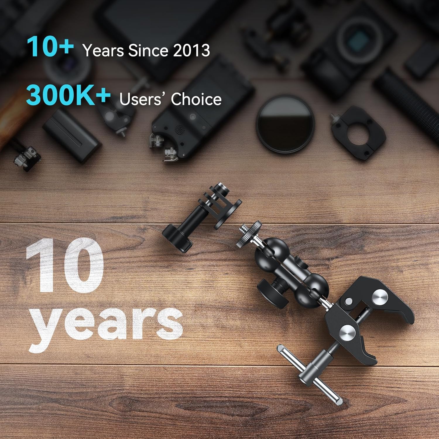 - Sturdier Upgrade: The clamp has been enhanced with non-slip threads and an anti-twist structure based on the classic design of the crab super clamp, supporting up to 1.5kg without loosening. Allows you to focus on content creation.