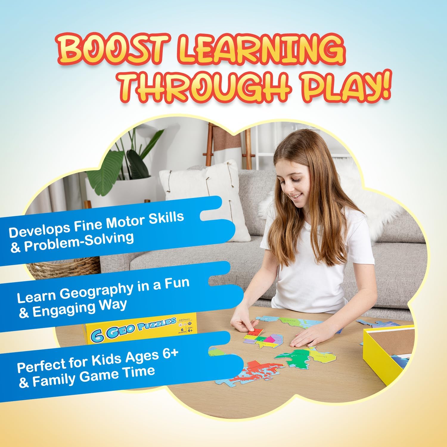 GeoToys GeoPuzzle, Country-Shaped Jigsaw Puzzles Set of 6 in One Box, Geography Puzzle, Map Puzzle, Jigsaw Puzzles for Kids Ages 6-9 Years Old