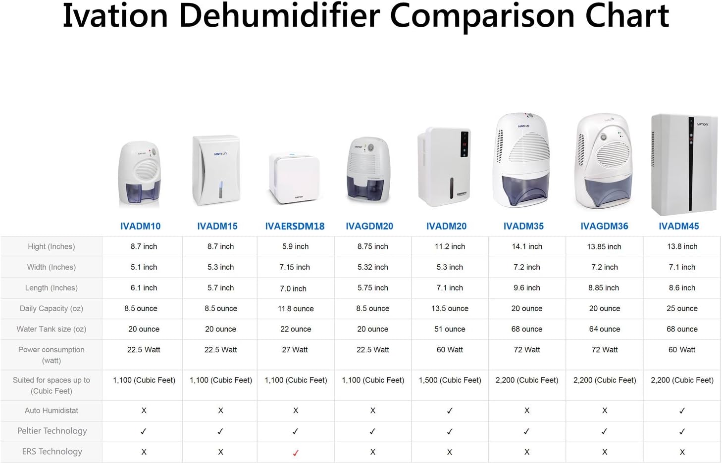 Ivation IVADM10 Powerful Small-Size Thermo-Electric Dehumidifier - for Smaller Room, Cupboard, Basement, Attic, Stored Boat, RV, Antique Car,White