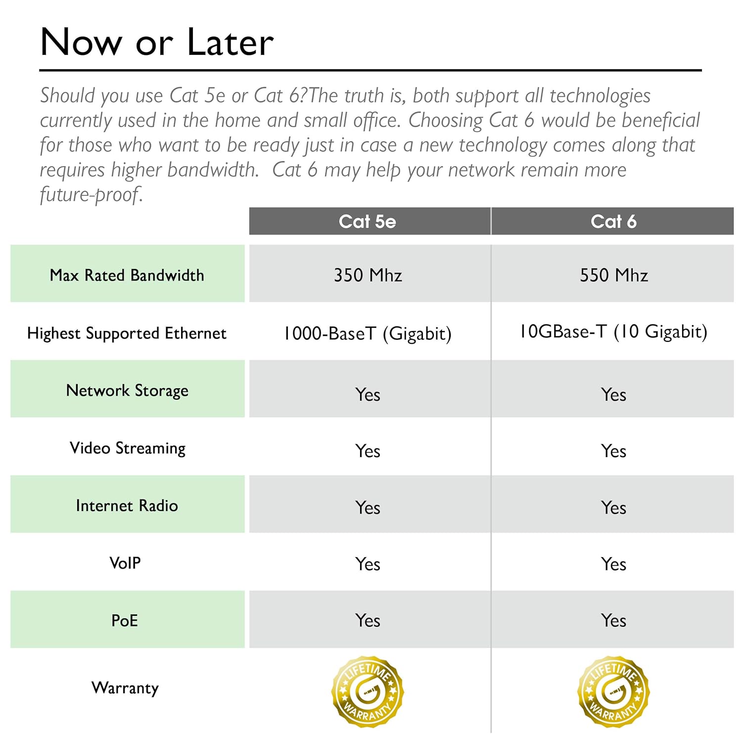 - Premium quality Category 5 enhanced cable, long-lasting materials, durable design, and a Lifetime Warranty for the price of a generic cable