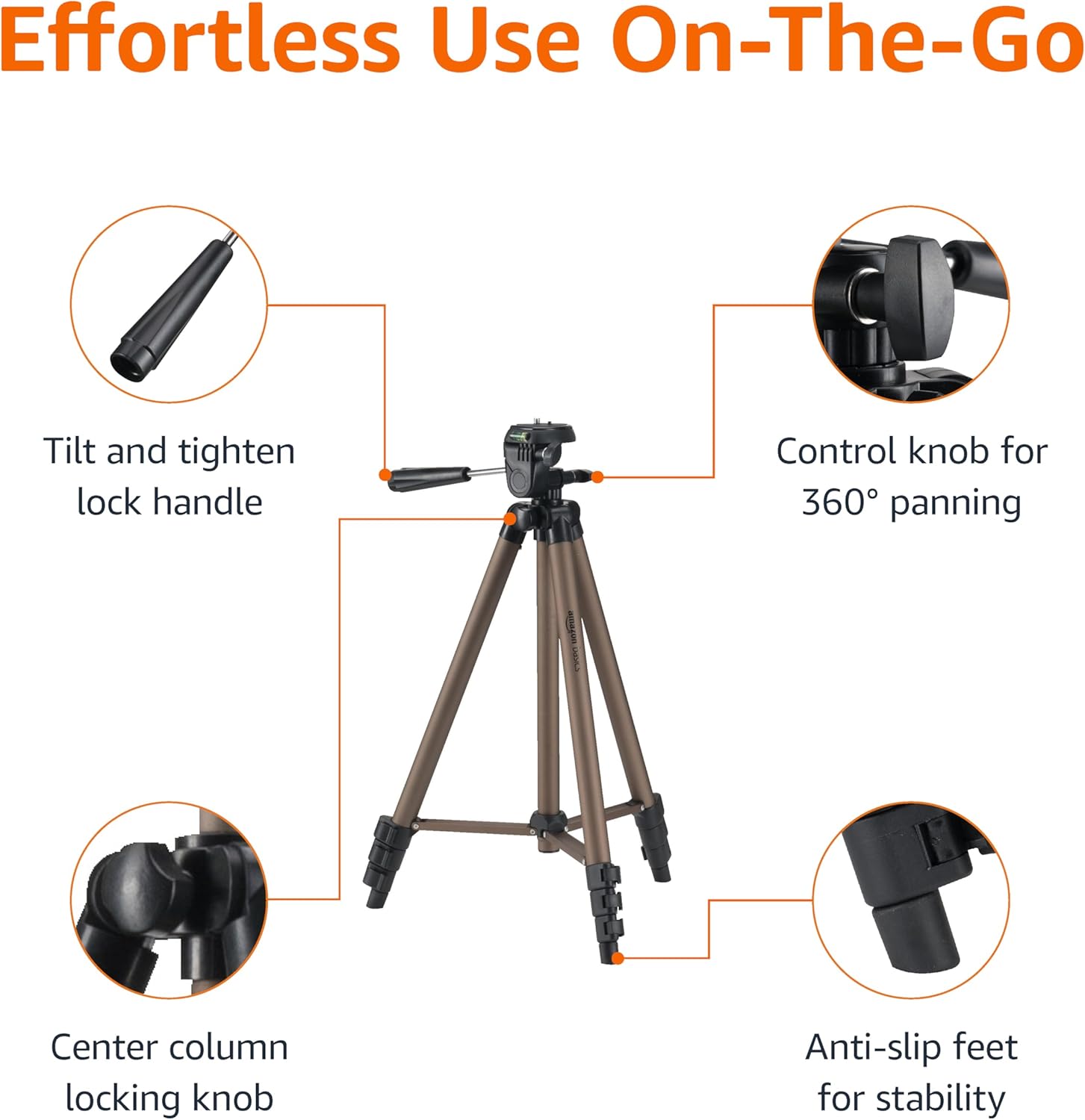 Amazon Basics 50-inch Lightweight Portable Camera Mount Tripod Stand with Bag, for Travel Photography, Champagne