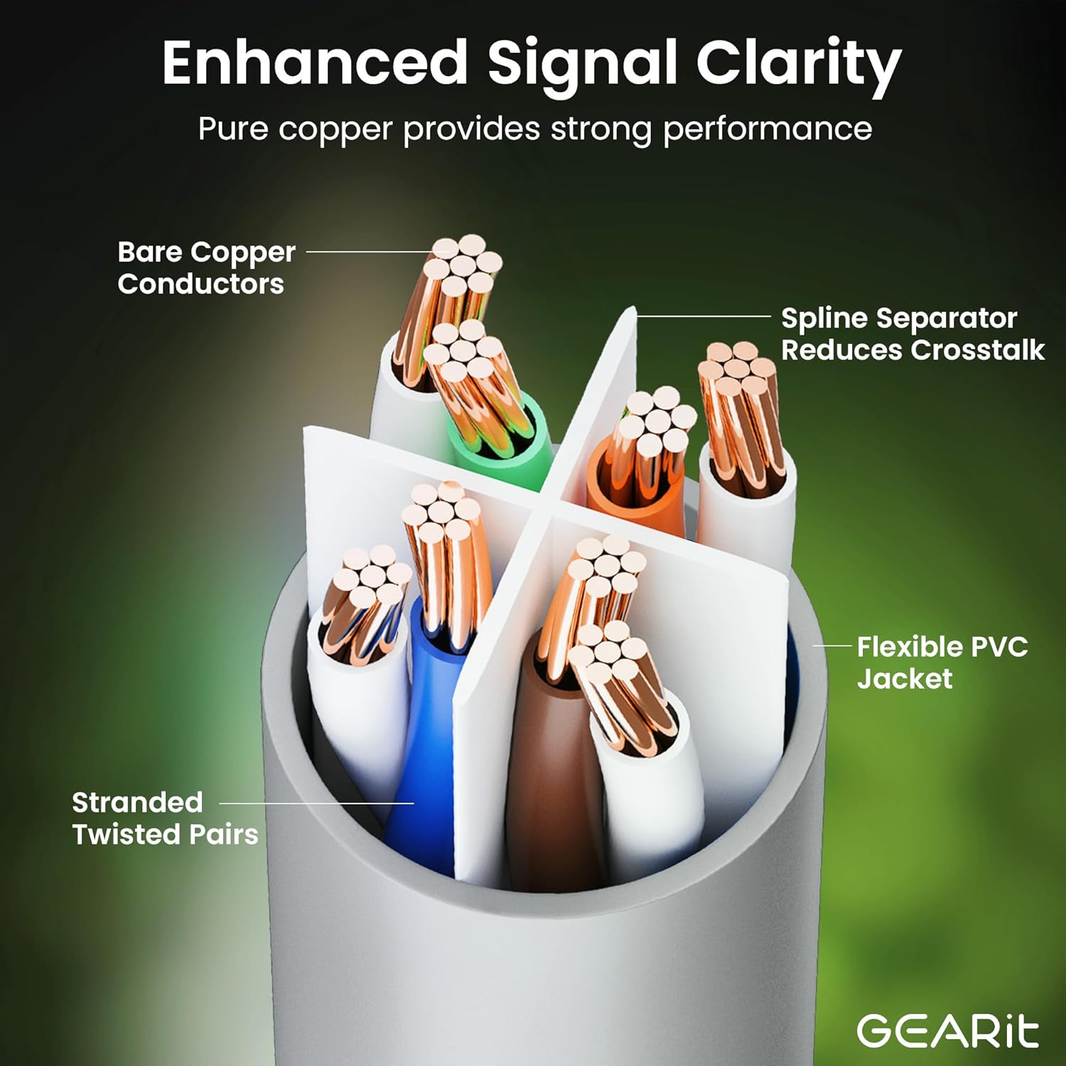 GearIT Cat 6 Ethernet Cable (24-Pack 3 Feet) Cat6 Network Patch, 10Gbps, RJ45, Snagless Cord, Gold-Plated Connectors, Internet for PC, TV, Tablet, Router, Printer, Servers, IT Data Center - Gray