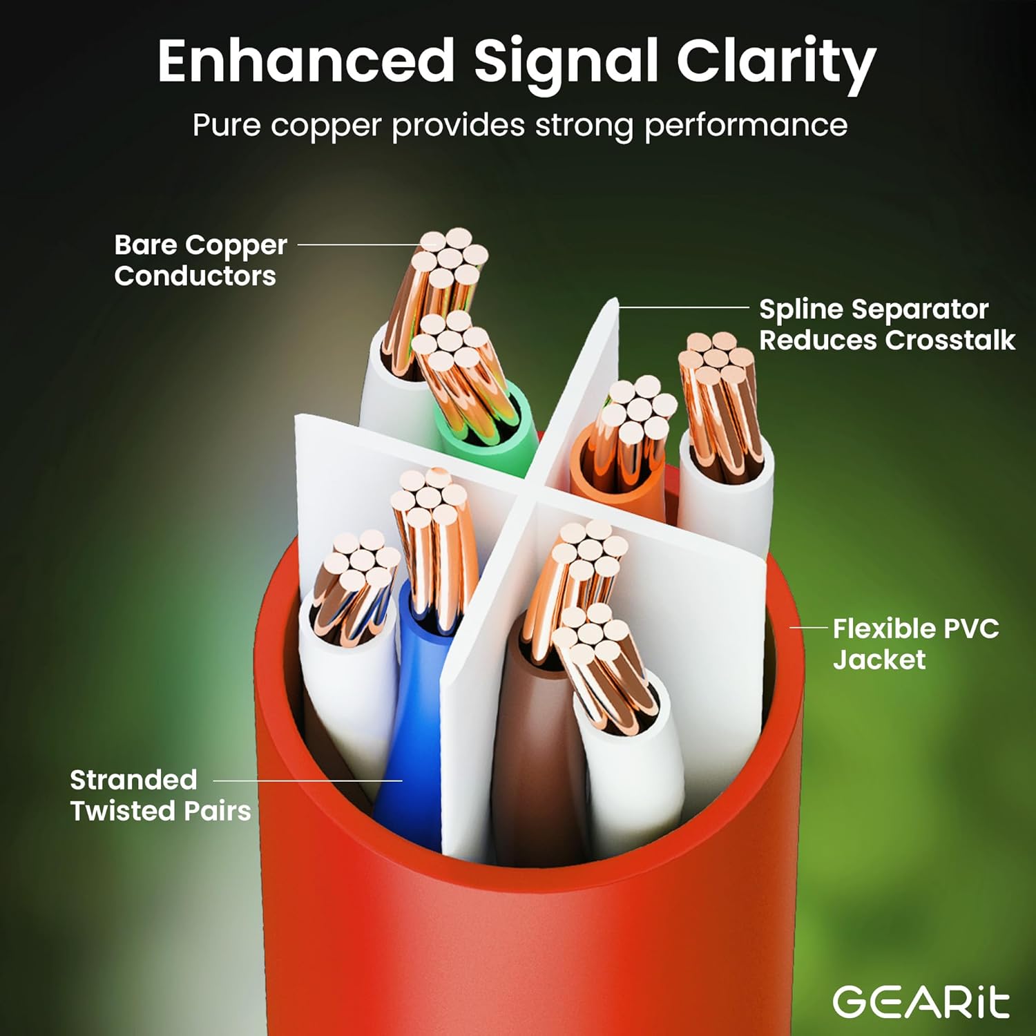 GearIT Cat 6 Ethernet Cable (24-Pack 3 Feet) Cat6 Network Patch, 10Gbps, RJ45, Snagless Cord, Gold-Plated Connectors, Internet for PC, TV, Tablet, Router, Printer, Servers, IT Data Center - Red