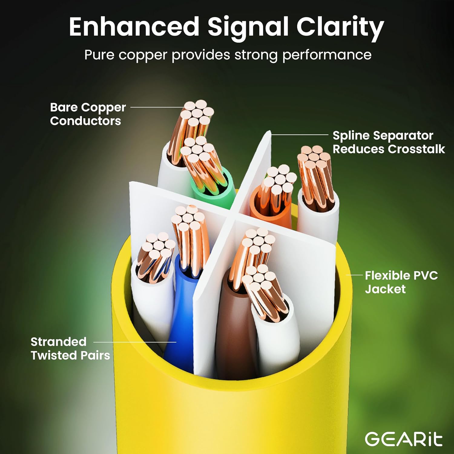 GearIT Cat 6 Ethernet Cable (24-Pack 5 Feet) Cat6 Network Patch, 10Gbps, RJ45, Snagless Cord, Gold-Plated Connectors, Internet for PC, TV, Tablet, Router, Printer, Servers, IT Data Center - Yellow
