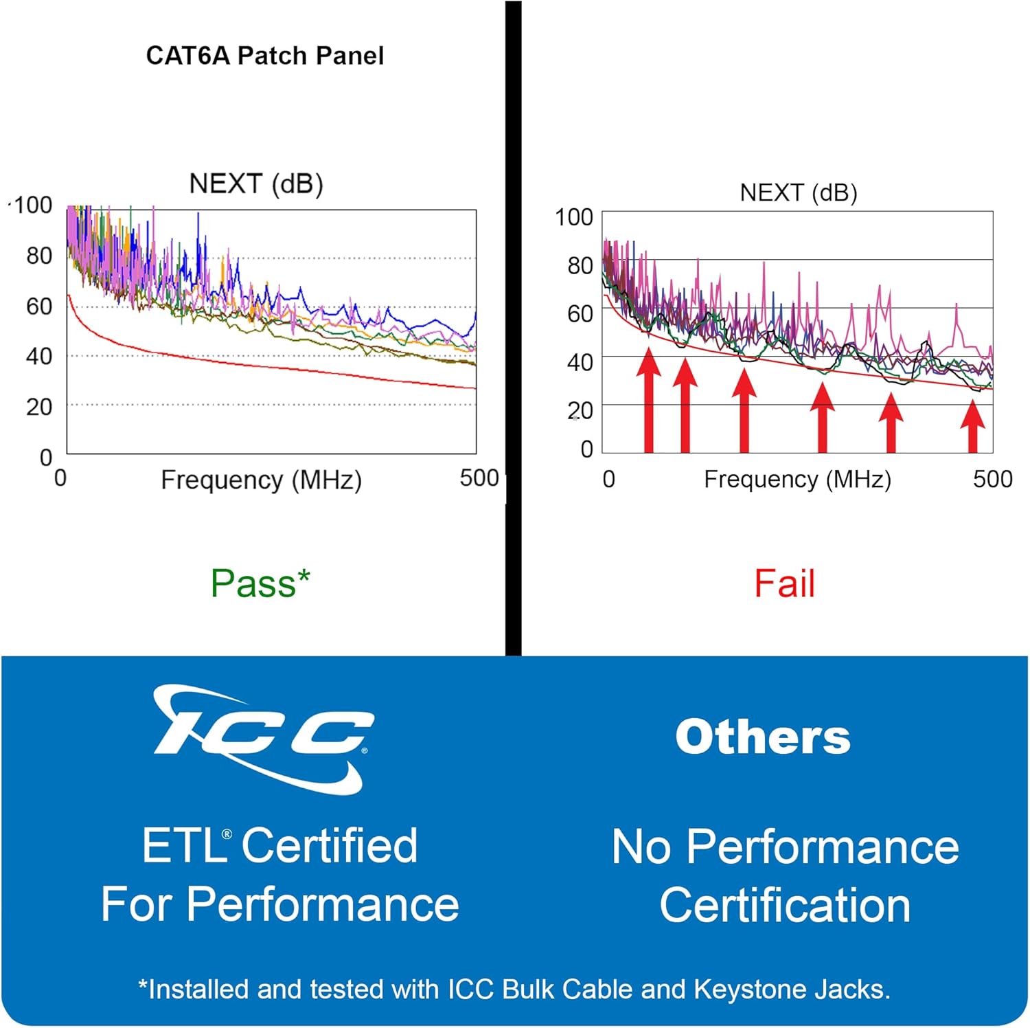 - ENHANCED CROSSTALK CANCELLATION: The 110-Type IDC connections on the rear are positioned vertically to effectively reduce potential alien crosstalk. This design is engineered to exceed ANSI/TIA-568 Category 6A connecting hardware requirements, providing enhanced crosstalk cancellation, reducing return loss, and improving overall network performance.