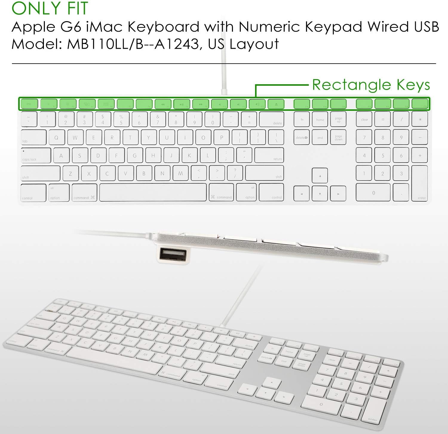 - Compatible ONLY with full size Apple(G6) keyboard with numeric keypad wired USB (A1243 MB110LL/B). CHECK the keys on the First Row are RECTANGLE ones.