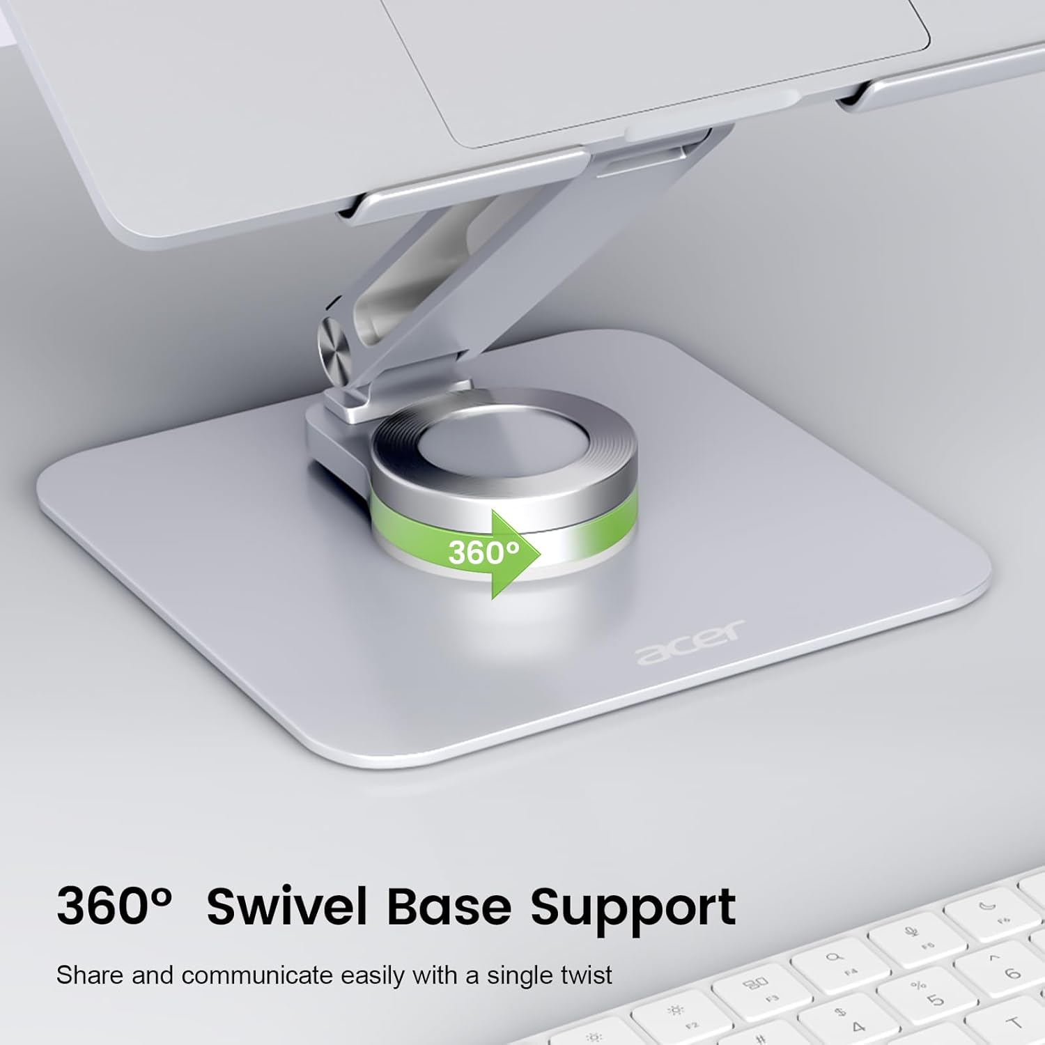 acer Laptop Stand for Desk - with 360 Swivel Base, Rotating Laptop Riser for Desk, Adjustable Computer Stand for Laptops, Ergonomic Riser Holder Foldable, Portable MacBook Pro Air (10-16") - Silver
