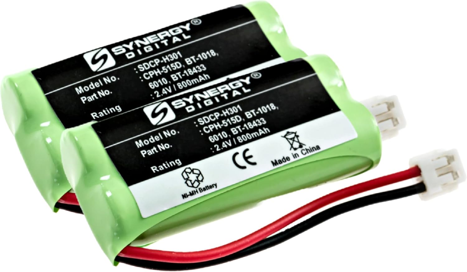 - (2) Pack Replacement Batteries for Rechargeable - Ni-MH 1X2AAA/D, 2.4 Volt, 800 mAh.
