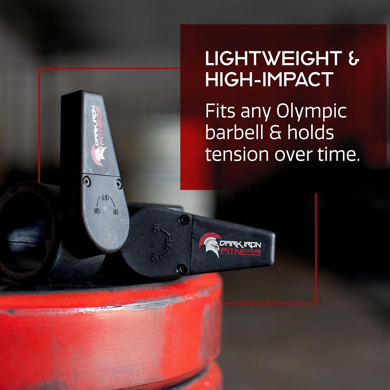 Dark Iron Fitness Barbell Clamps 2 Inch - 1 Pair of Olympic Size Weight Barbell Collars, Professional Weightlifting Plate Clips with Quick Release Spring Lock to Hold Weights on Bars - Black