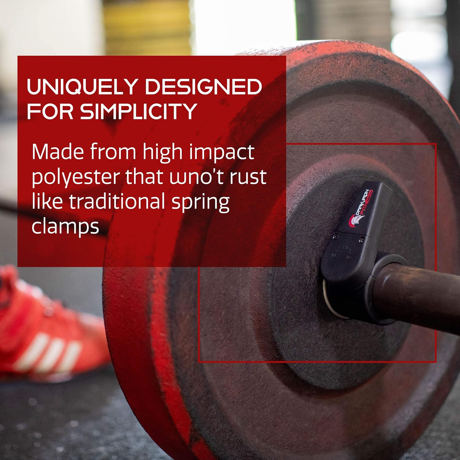 - DURABLE – Made from high impact polyester, this set of barbell clips are made to firmly hold weight plates on. No shifting or wobbling. Designed for reliability, the strong grip will hold up after repeat use. Won't rust, scratch, or lose tension.
