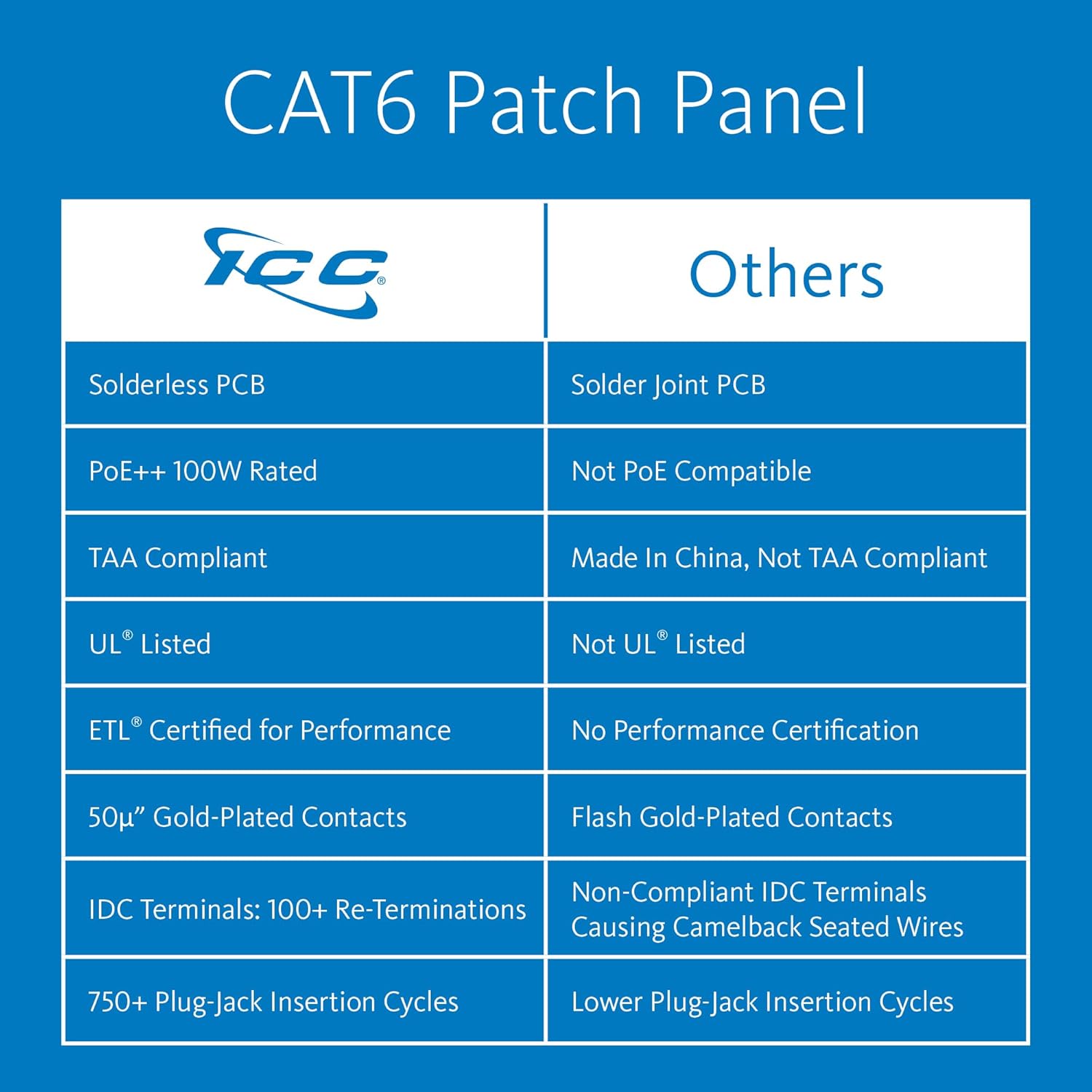 ICC CAT6 Patch Panel, UL Listed & PoE++ Rated Gigabit Applications, Wall Mount 12 Port Network Patch Panel with Rear 110 IDC Terminal Blocks and 89D Wall Mount Bracket, Black, 6-Pack