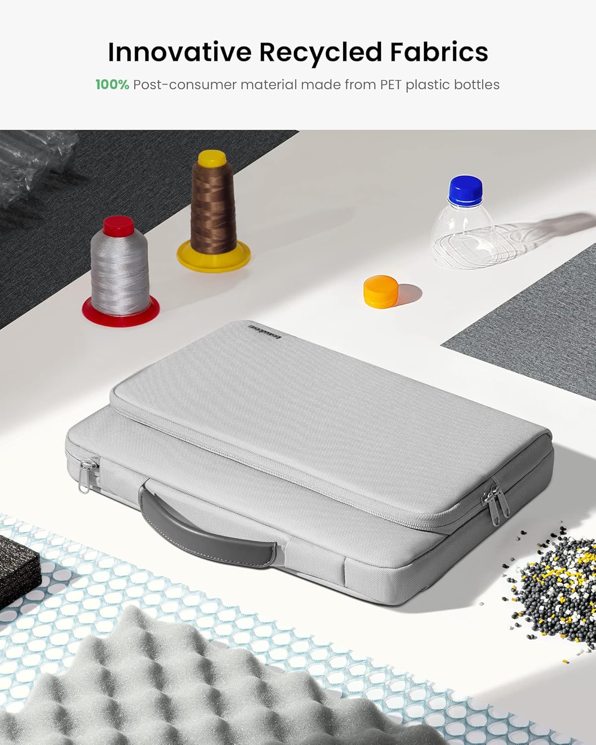 - Quality Meets Performance: Top-quality YKK zippers and padded PU leather handles provide you with maximum comfort. Water-resistant recycled fabrics and soft fleece sophisticated interline design lining meet or exceed your expectations for laptop bag quality. Enable us to give complete protection to your computer while also protecting our environment