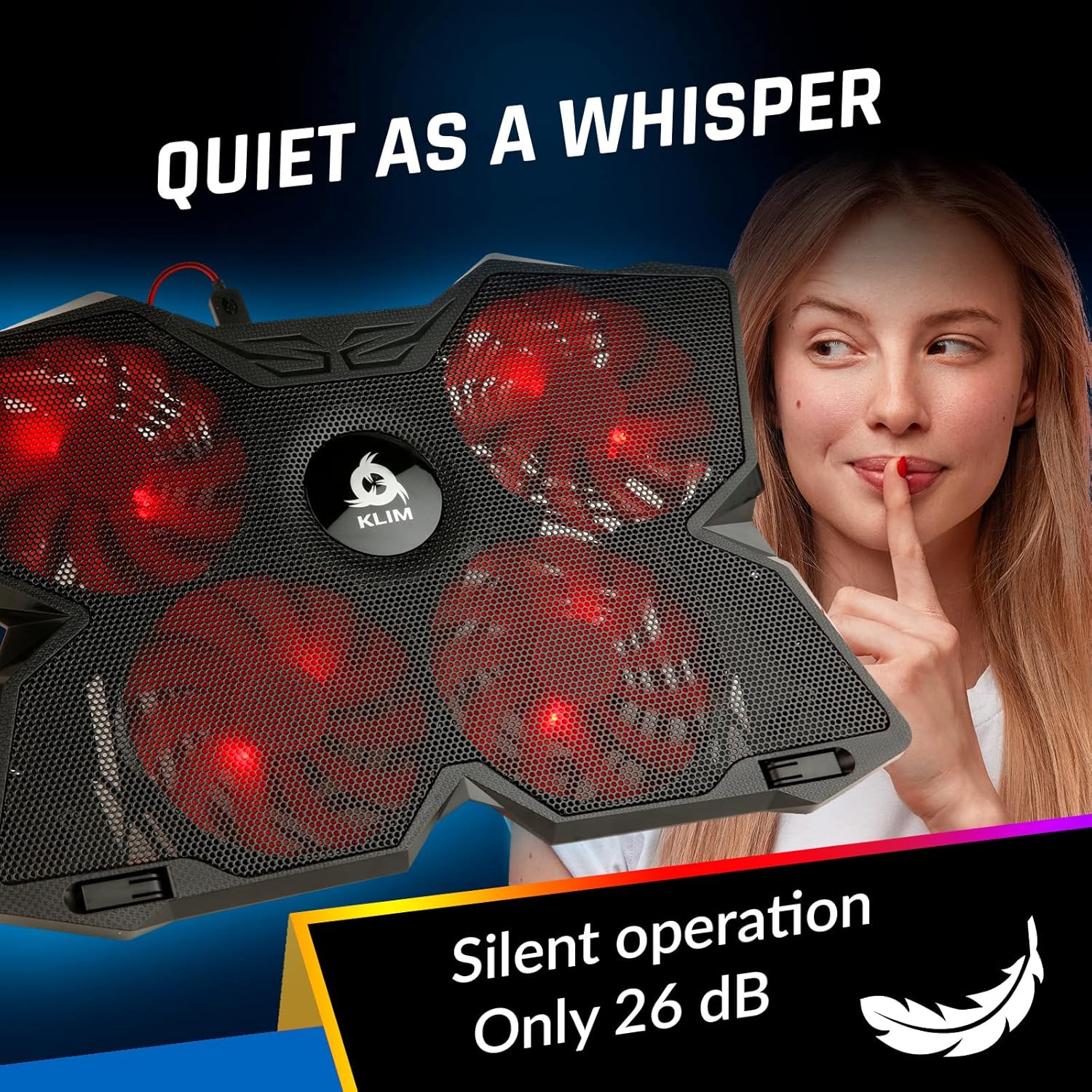 KLIM Wind Laptop Cooling Pad - More Than 500 000 Units Sold - New - The Most Powerful Rapid Action Cooling Fan - Laptop Stand with 4 Fans at 1200 RPM - USB - PS5 PS4 - Red