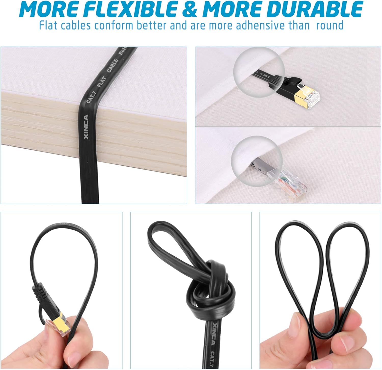 - UNIVERSAL COMPATIBILITY: Cat7 flat internet cable is applicable to communication device with RJ45 socket,such as home server,Xbox,PS4,router,data room,HDTV ,RoKu,and switch.