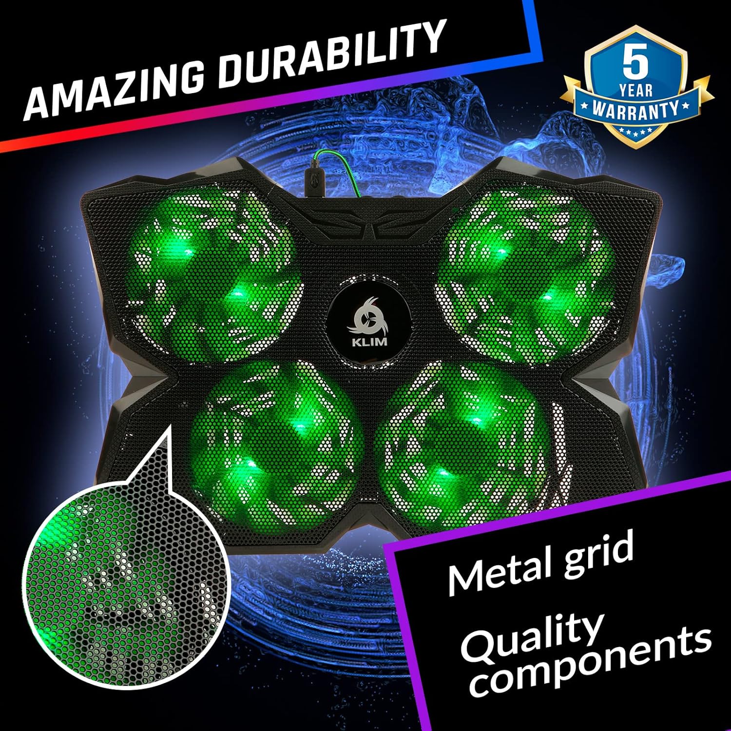 KLIM Wind Laptop Cooling Pad - Support 11 to 17 Inch Laptops, PS4-4 Fans - Light, Quiet, Powerful Cooling - Gamer USB Slim Portable Laptop Stand - New 2021 Version - Green