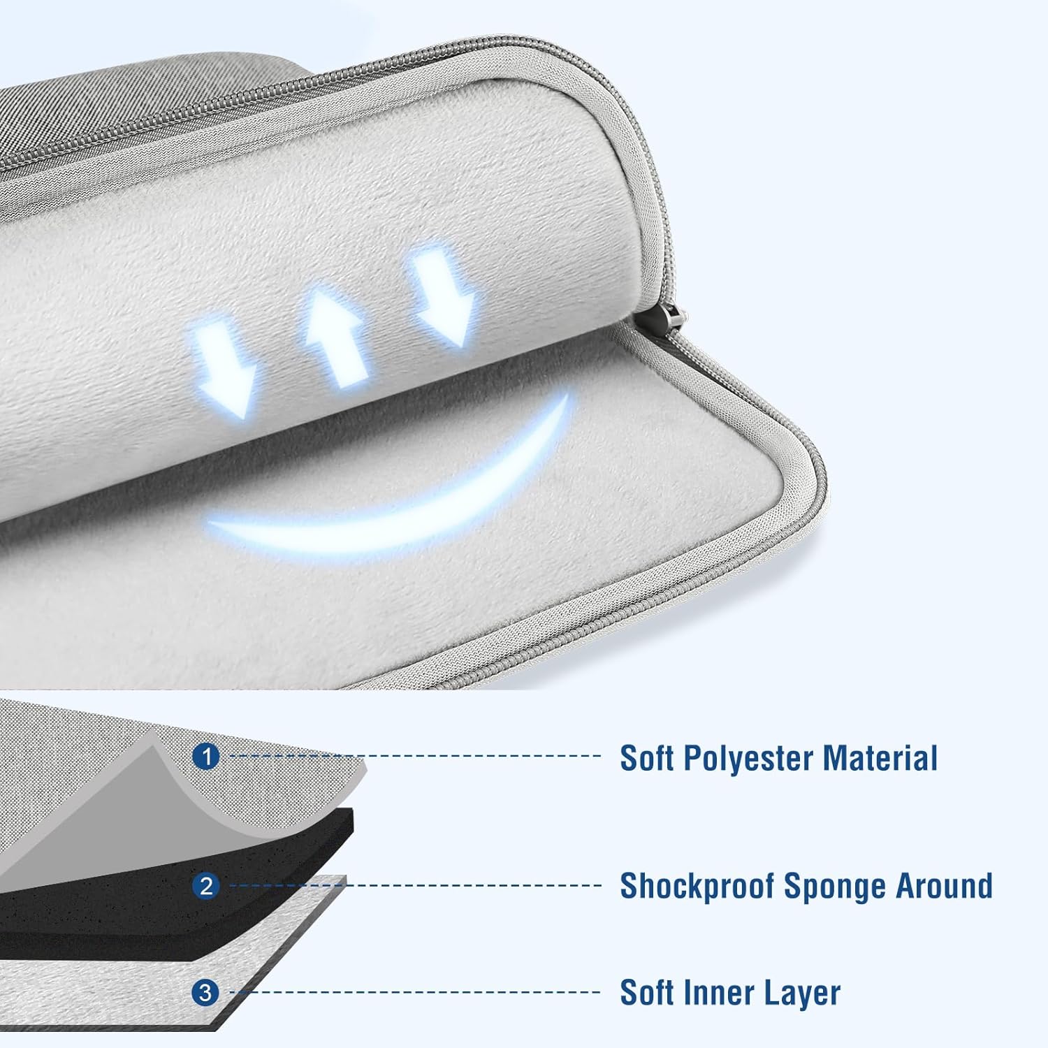 - Features a polyester foam padding layer and fluffy fleece fabric lining for bump and shock absorption and protection of your device against bump, shock and accidental scratches.