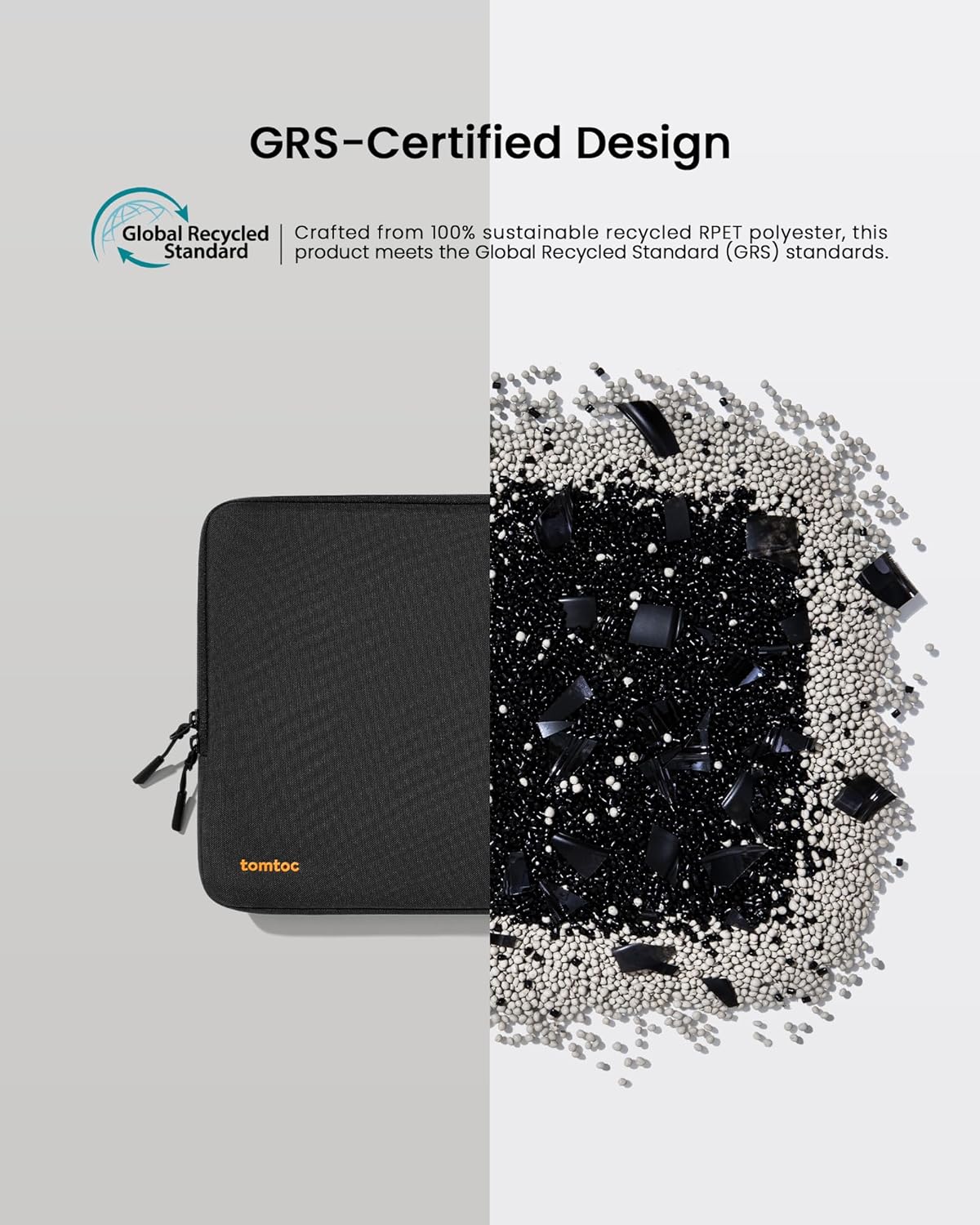 - Military-Grade Protection: To combat the toughest situations: from falls to shocks to vibrations, tomtoc proposed the concept of 360 protection and designed the laptop sleeve with CornerArmor Technology, high resilience edges, and high-density soft padding. It passed the Military-Standard-Drop-Test while also maintaining a sleek design