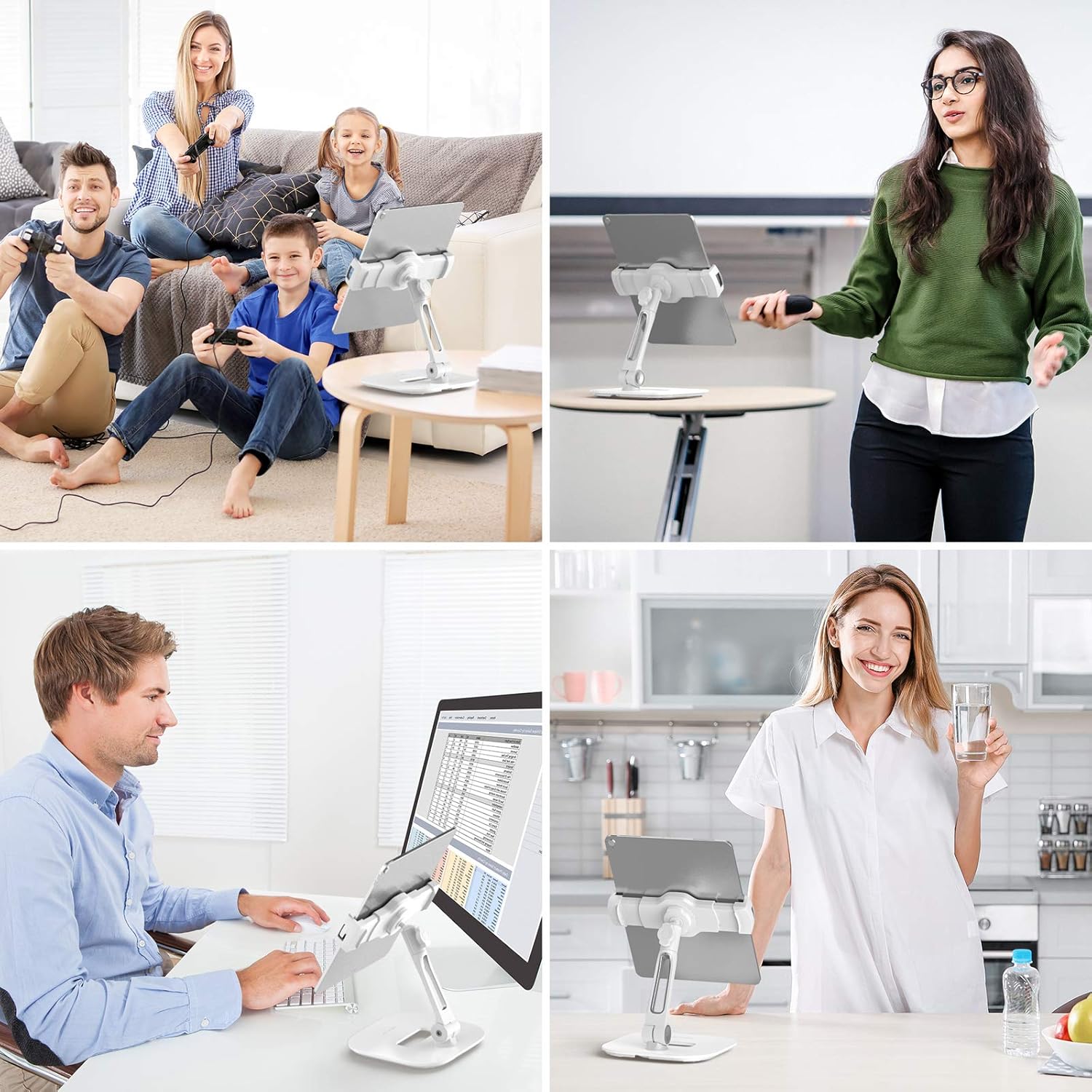 - Flexible adjustment - 360° rotation holder and arm base plus 150° arm folding range creates numerous multi-angle viewing in all dimensions, a must-have iPad stand for home entertainment, shops showcasing as square stand, office display. Perfect hands-free convenience for seniors at home enjoying modern technology