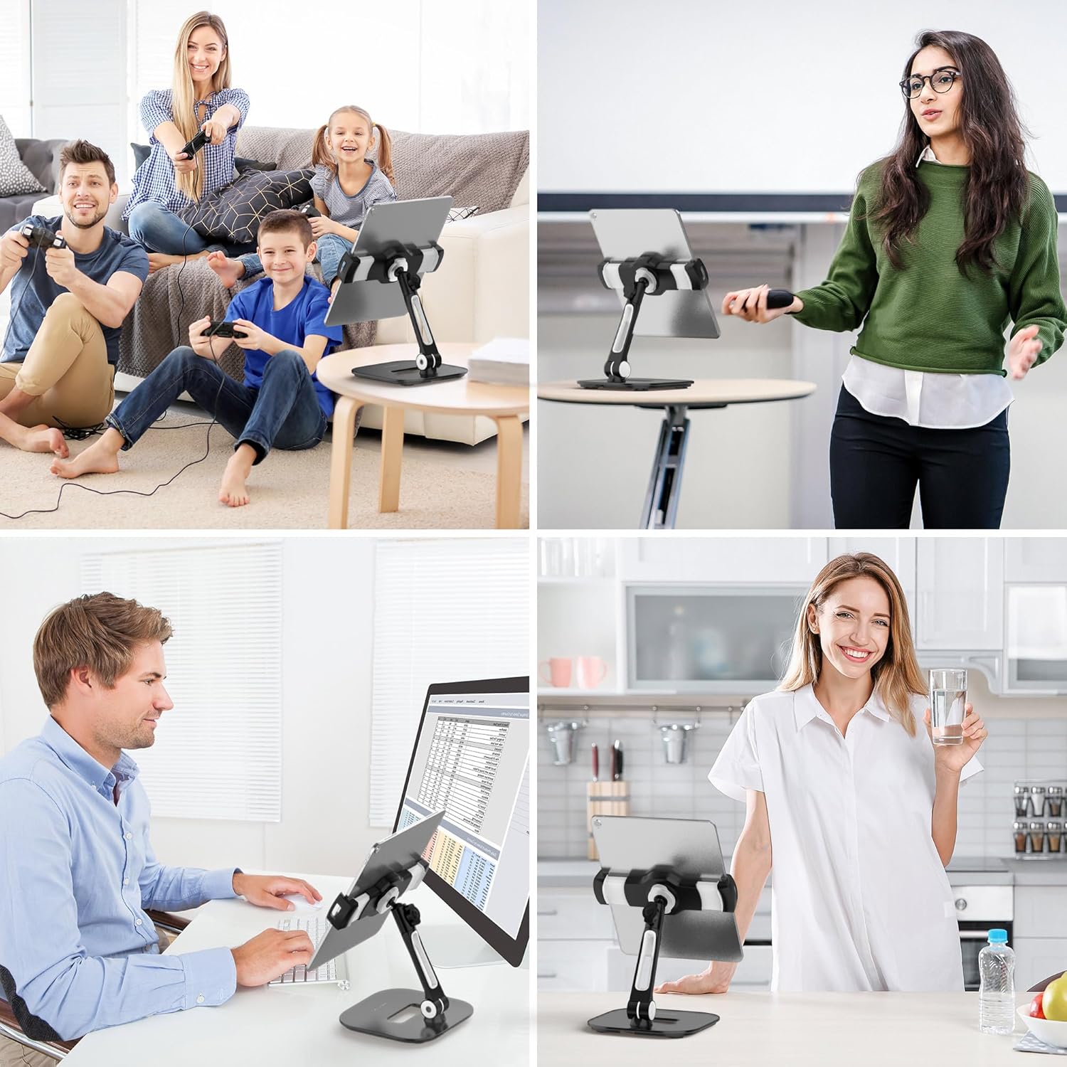- Flexible adjustment - 360° rotation holder and arm base plus 150° arm folding range creates numerous multi-angle viewing in all dimensions, a must-have iPad stand for home entertainment, shops showcasing as square stand, office display. Perfect hands-free convenience for seniors at home enjoying modern technology