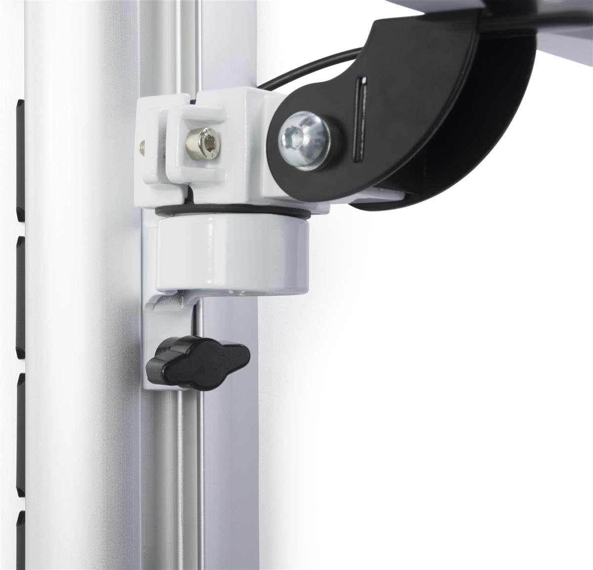 Displays2go Adjustable Monitor Display for Wall Mounting, Adjustable Height, Aluminum Build – Silver, White (VMSSWWM27)