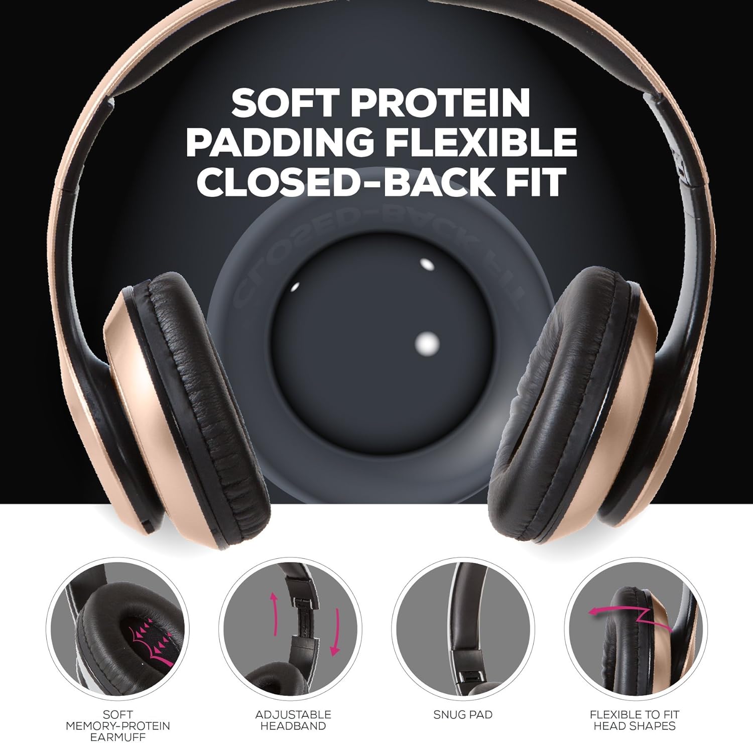 iJoy Bluetooth Headphones Over Ear, Wireless and Wired Foldable Headset Built-in Microphone, FM, Micro SD Card Slot - (Gold) Adults Kids Men Women