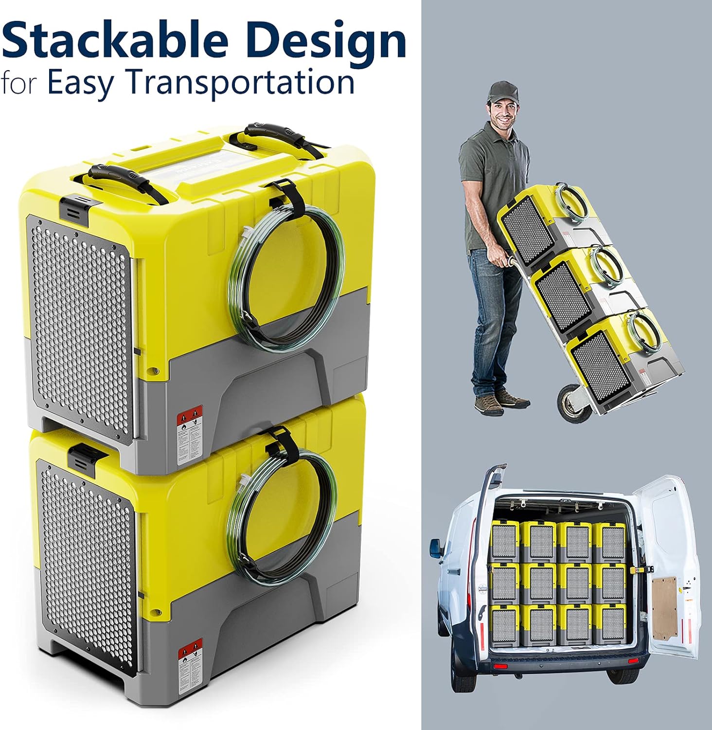 - Dehumidifier with Pump for Easy Drainage: This commercial dehumidifier with pump will automatically drain the condensate out for the low-hassle operation. Plus, the 19.6 ft long drain hose and 14.7 ft drain vertical height maximize the flexibility of installation.