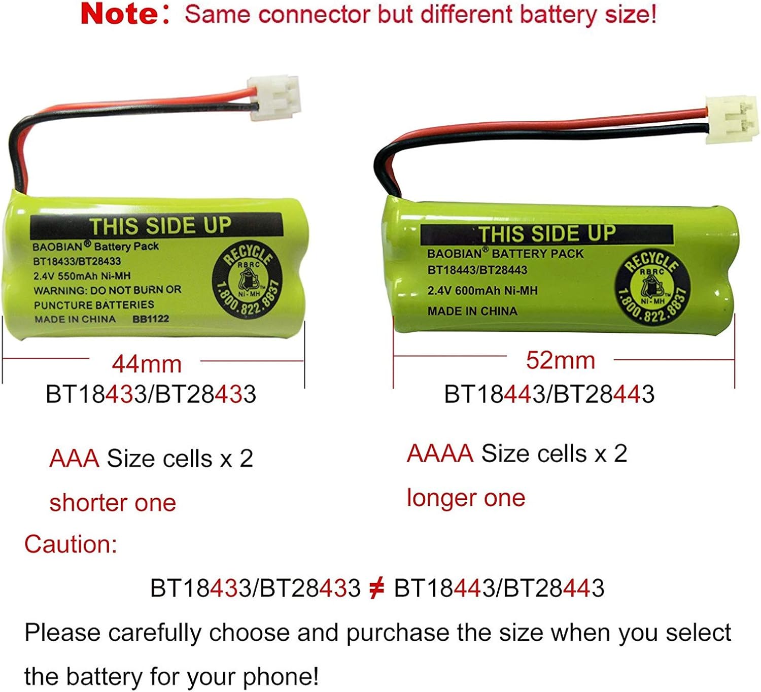 2.4V Rechargeable Cordless Phone Batteries Compatible with for AT&T/Lucent BT-18433 BT-184342 BT-28433 BT-284342 BT-6010 BT-8000 BT-8001 BT-8300 Empire CPH-515D CPH515D(Pack of 2)