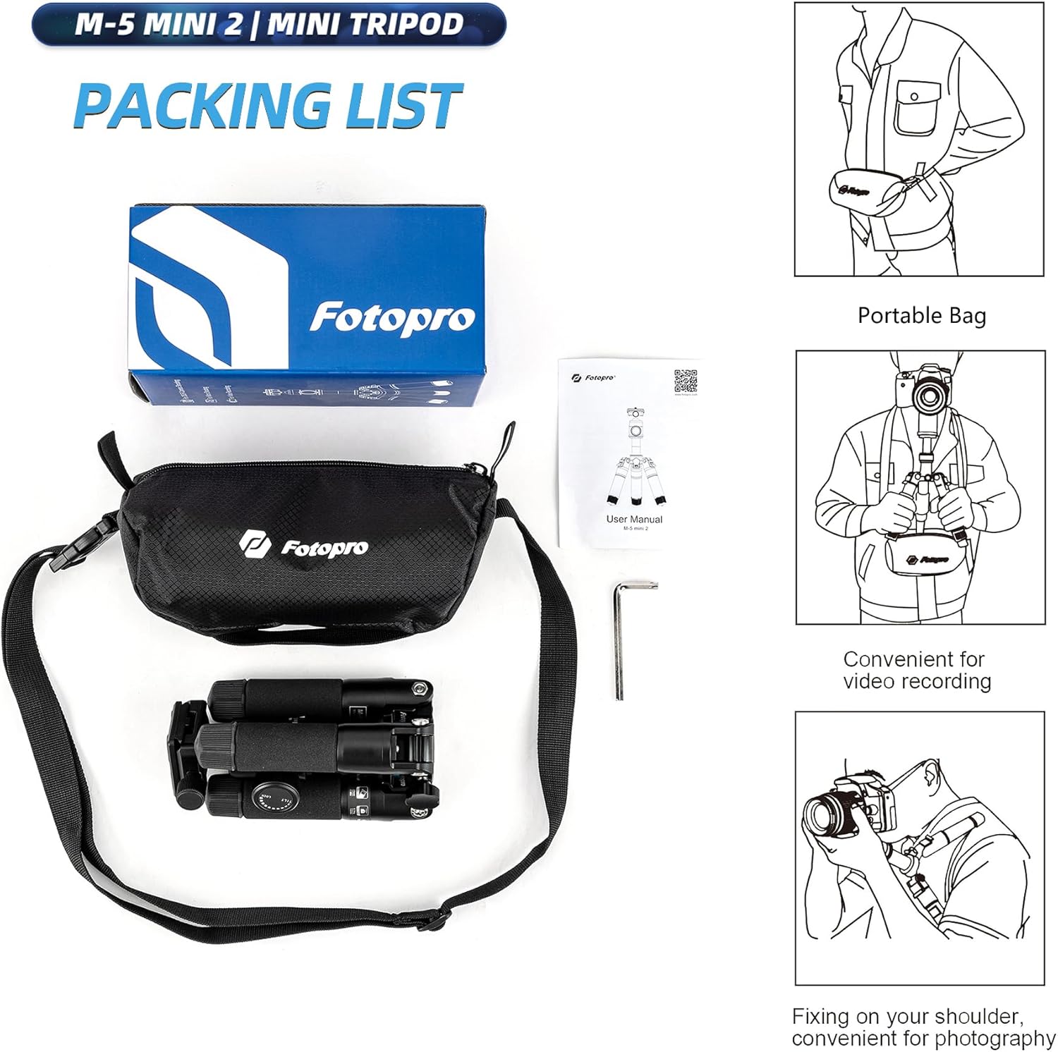 - PORTABLE & PRACTICAL M-5Mini is a 5.9 inches desktop mini tripod, only weighs 1.7lbs, and comes with a carry bag for easy traveling. The aluminum tripod is very stable and you can use it in different terrains because of the rubber feet.
