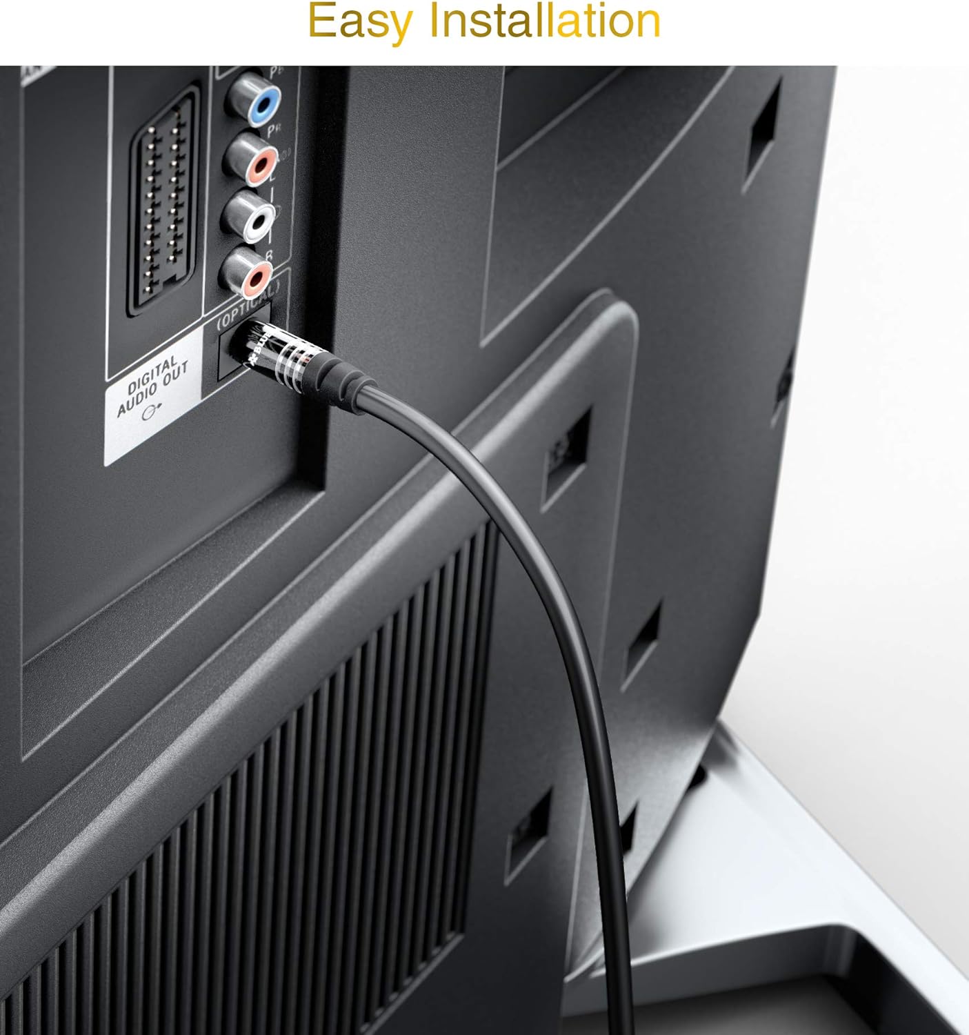 - 【Solid Construction】Precision-polished 24K Gold plated optical connectors for optimal signal transfer and corrosion resistance. This protects against RFI & EMI interference. The slim connector design, allows for a snug and easy fit in the device
