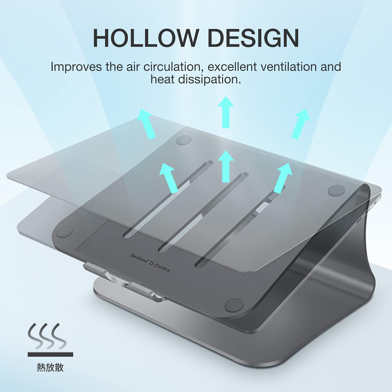 - Considerate Design Silicone pads on the top surface, front lip and at the bottom to hold your laptop stable in place and maximum protect your device from any scratches and sliding. The heat conduction alloy and ventilation hollow design, prevent it from overheating and keep your notebook cooling.