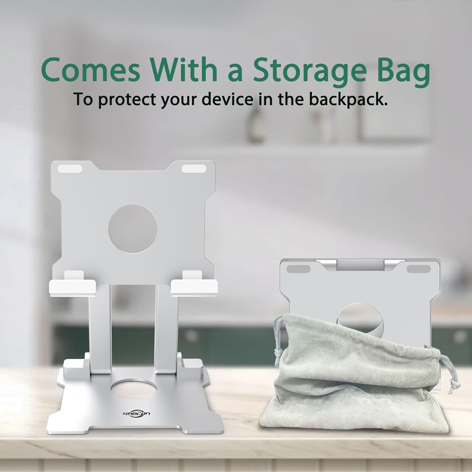 KABCON Quality Tablet Stand,Adjustable Foldable Eye-Level Aluminum Solid Up to 15-in Tablets Holder for Microsoft Surface Series Tablets,iPad Series,Samsung Galaxy Tabs,Amazon Kindle Fire,Etc.Silver