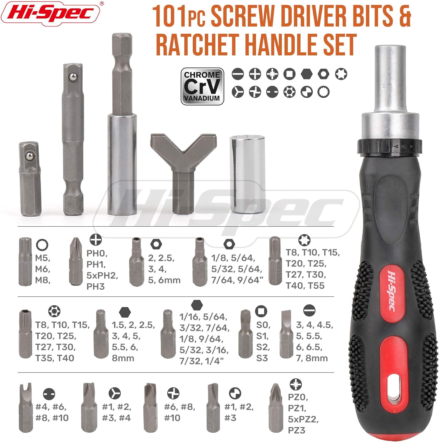 Hi-Spec 101pc Multi Bits Screwdriver & Ratcheting Handle Tool Set Kit. Complete 1/4” Hex Screwdriving with Tamper Proof Security Driver Bits