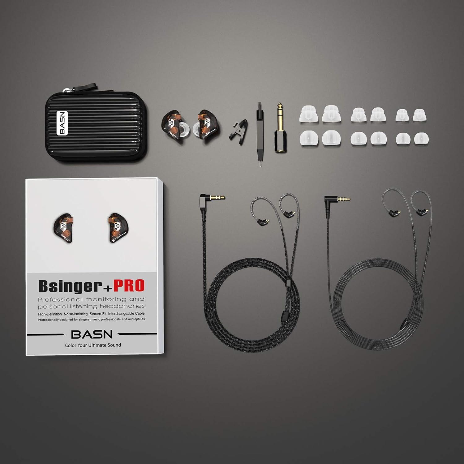 - PROFESSIONAL EAR MONITORS- Evolved from personal monitor technology, BASN PRO ear monitors have been tested by musicians. This headphone monitors offer detailed sound with highs, mids and lows for professional monitoring and personal listening.