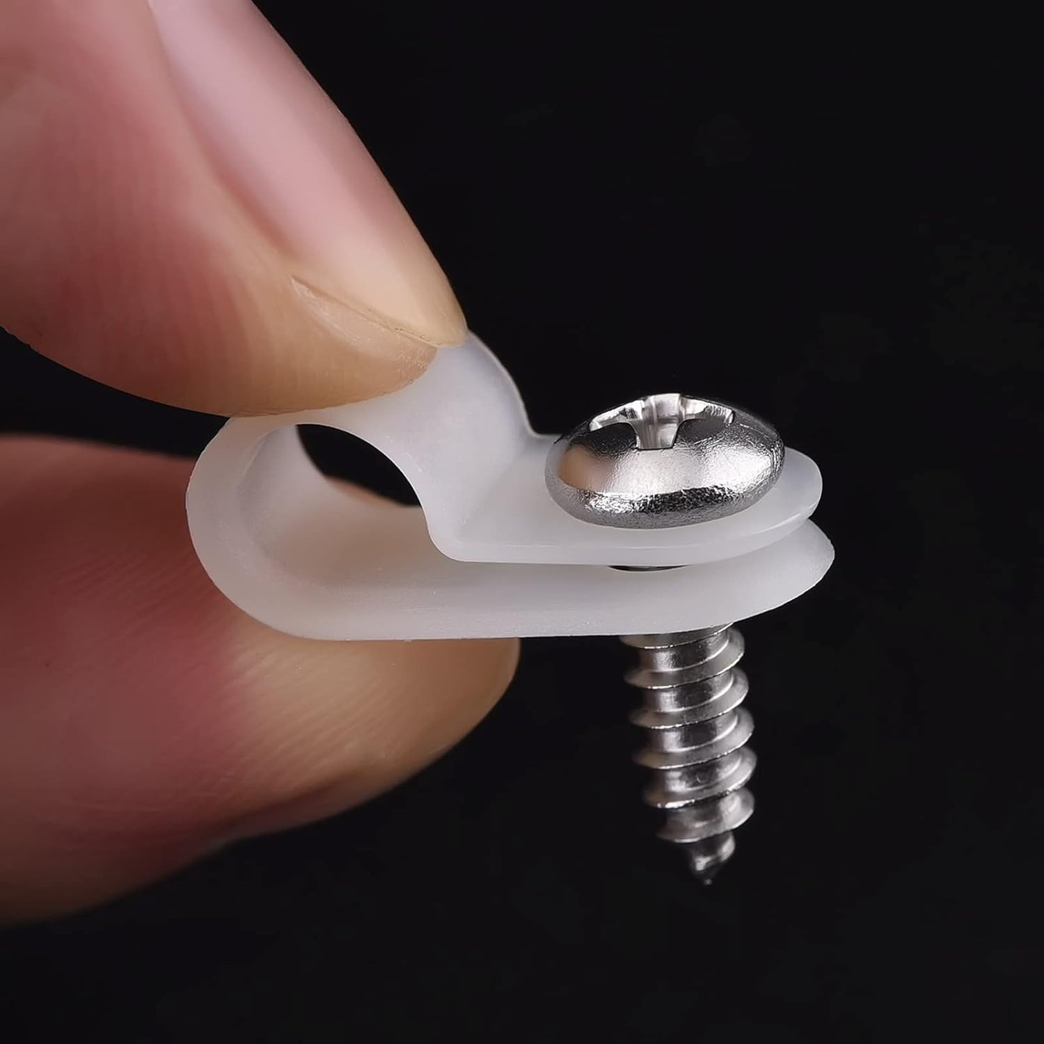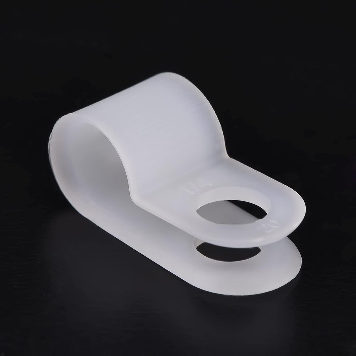 - Size: the r-type cable clip has a 1/ 2 inch closed diameter; Quantity: 50 pack r-type clamps and 50 pack matching screws, they can be applied repeatedly