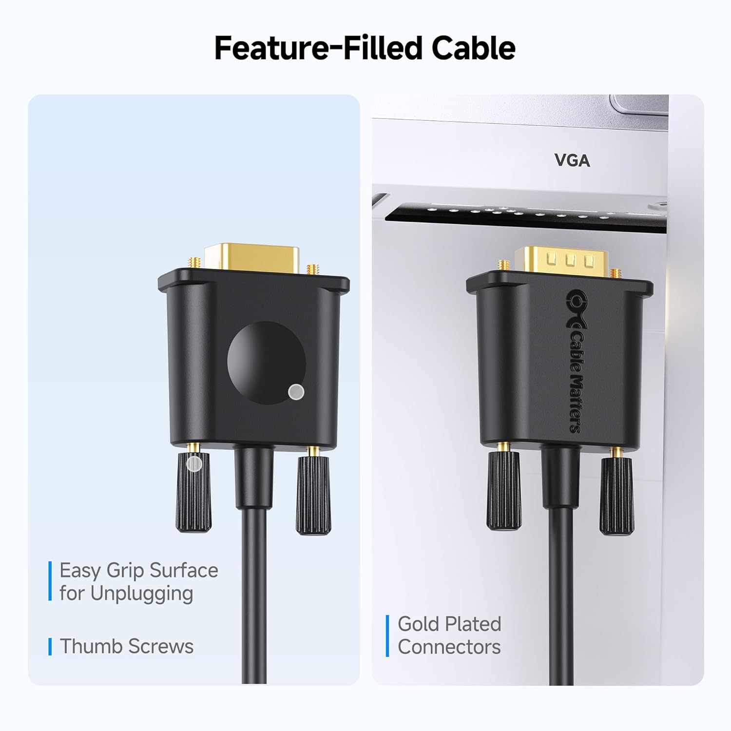 Cable Matters USB C to VGA Cable (USB-C to VGA Cable) 6 ft - Thunderbolt 4 / USB4 / Thunderbolt 3 Port Compatible with MacBook Pro, Dell XPS 13, 15, HP Spectre x360, Surface Pro, Yoga 910 and More