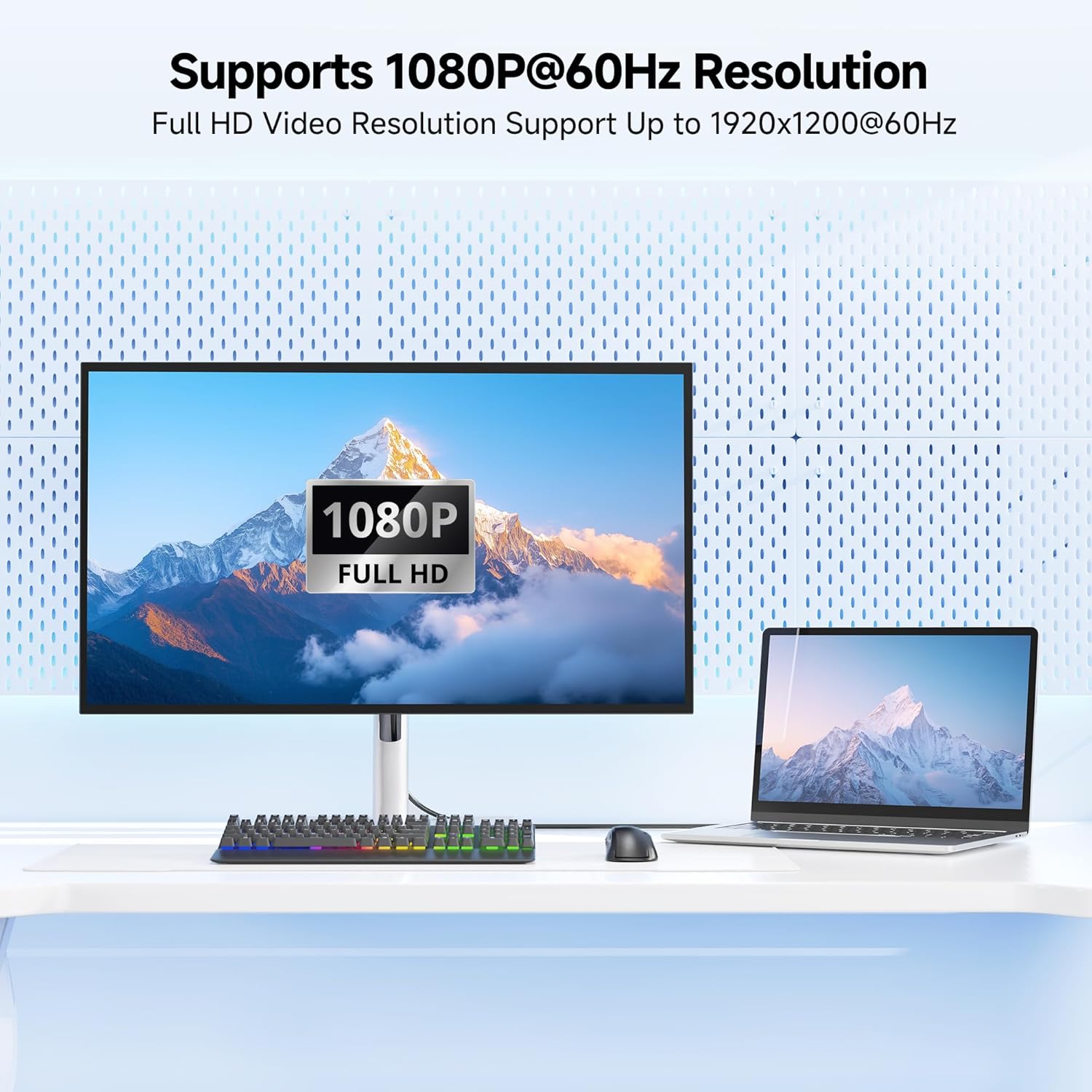 - USB C VGA cable supports 1080P resolution for high definition video; USB-C to VGA adapter cable clicks into place on your device and the VGA connector provide a snug and secure connection to the monitor