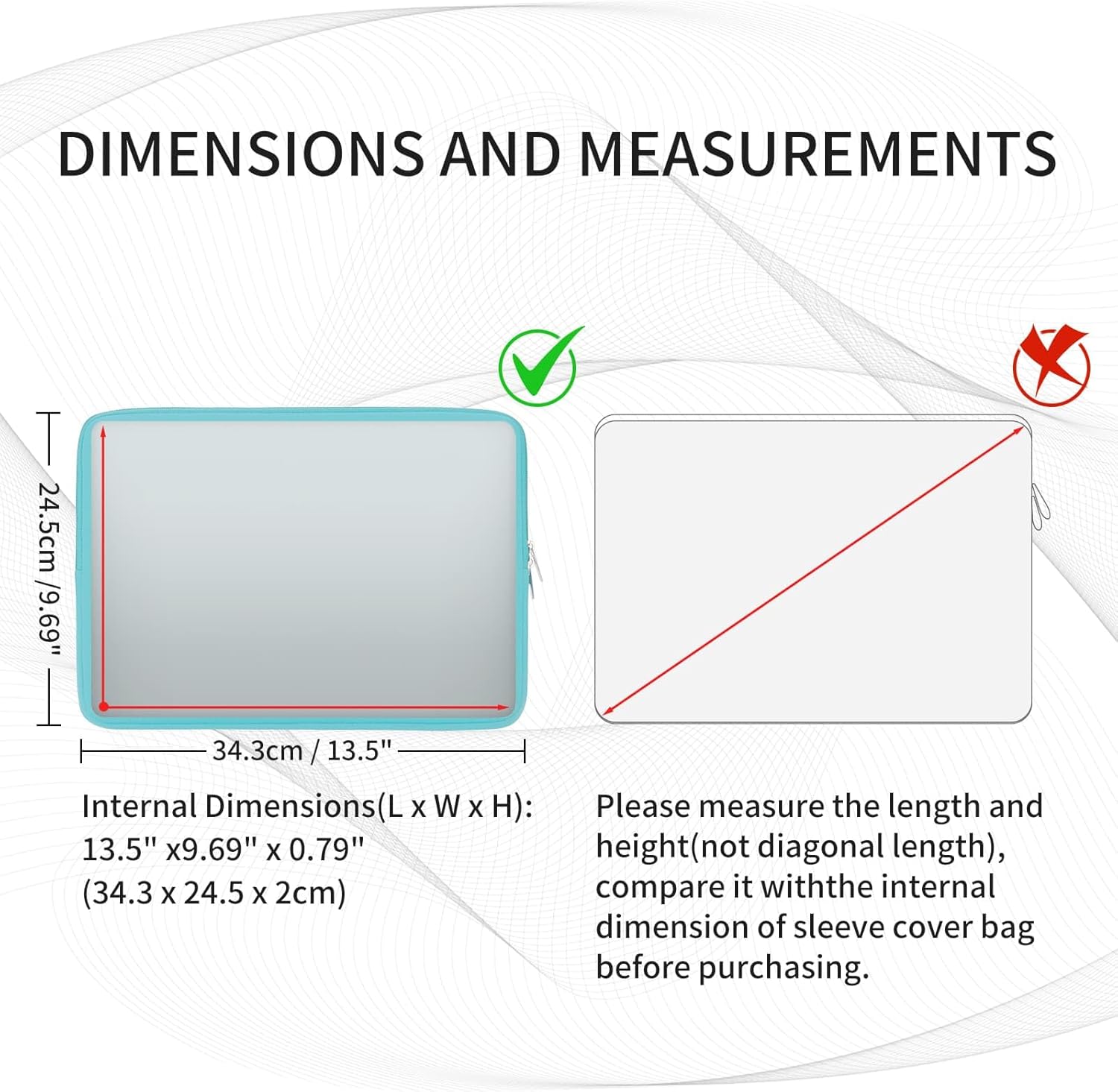 - NOTICE: The 14" case is a universal model for most 14" Laptop/ Notebook/Chromebook. Notice that we recommend the 13"-13.3" case for the 14" MacBook Pro M1 M2 M3 M4. External Dimensions:13.98" x 9.84" x 0.79";Internal Dimensions:13.50" x 9.69" x 0.79". If you especially need a snug fit or a loose fit, please compare the actual dimensions of your laptop with the internal dimensions of the sleeve, make sure those are smaller than the internal dimensions, the more similar, the more fit.