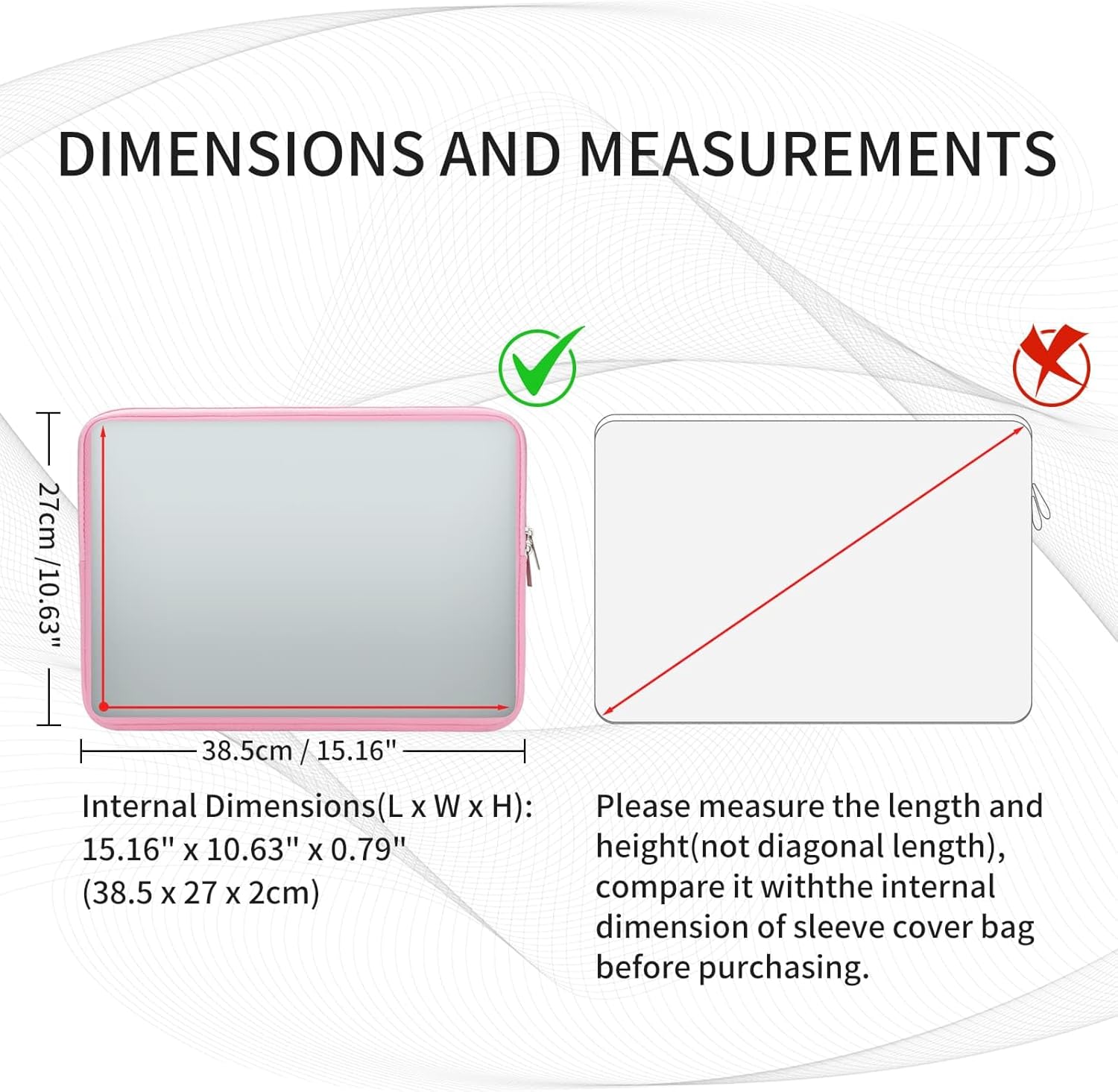 - APPLICABLE SIZE & MODEL:The 15.6" case is a universal model for most 15.6" Laptop/Tablet/Notebook/Chromebook. External Dimensions (L x W x H): 15.75" x 11.91" x 0.98"; Internal Dimensions(L x W x H): 15.16" x 10.63" x 0.79". If you especially need a snug fit or a loose fit, please compare the actual dimensions of your laptop with the internal dimensions of the sleeve, and make sure those are smaller than the internal dimensions, the more similar, the more fit.