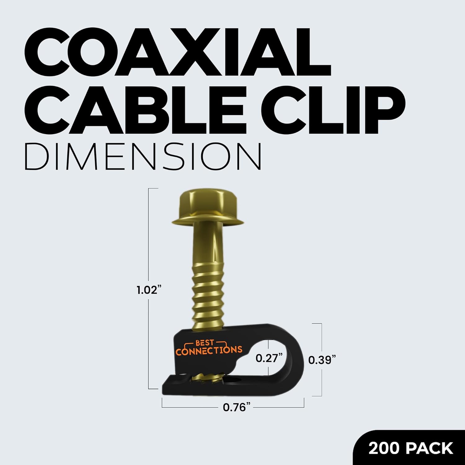 BEST CONNECTIONS Coaxial Cable Clips with Pre-Inserted Screw (200 Pack) – Black Single Cable Mounting Clamps for Coax Cable (RG6, RG59) and Ethernet Cable – Cord Fastener/Strain Relief Clip