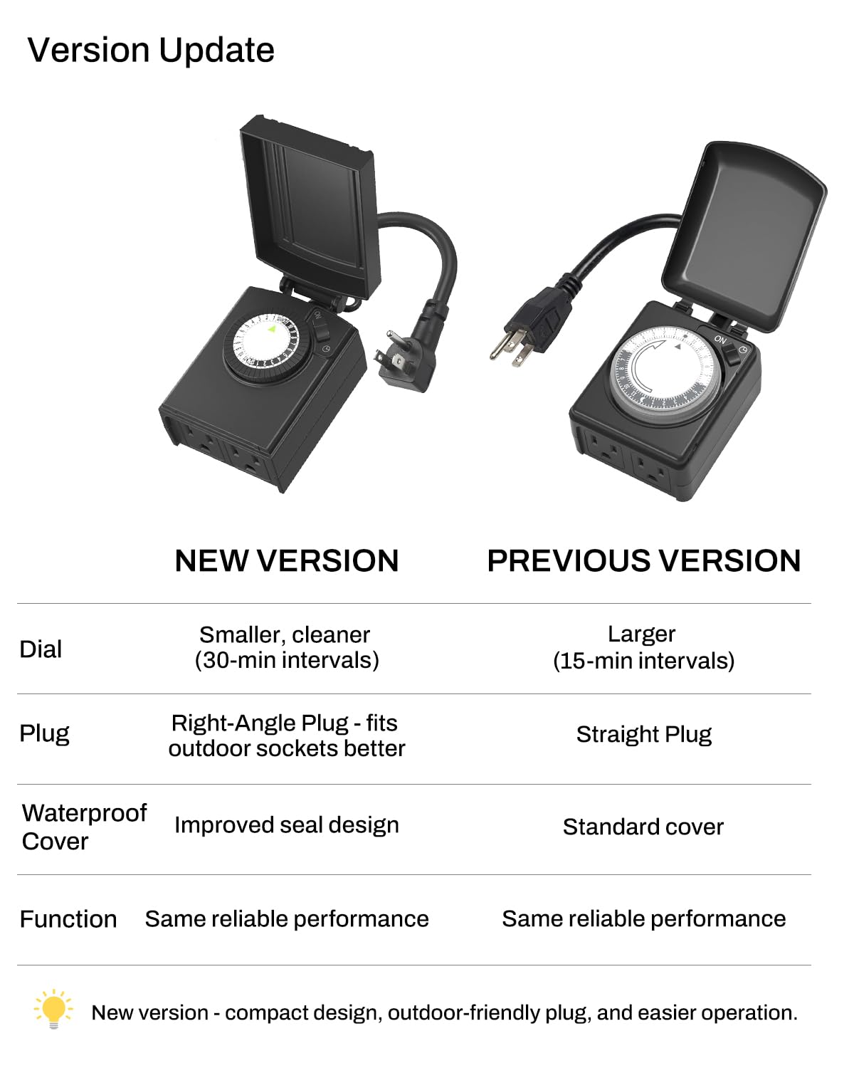 - Waterproof for outdoor use: Cover provides protecting timer from weather conditions. Heavy duty material and two grounded outlet makes it safe and durable.