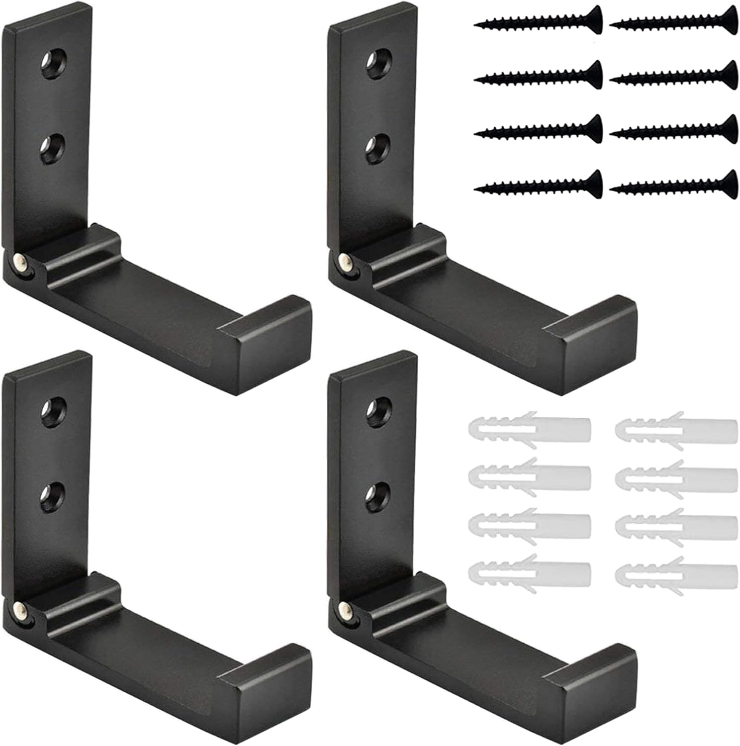 Folding Coat Hooks, Foldable Wall Hooks for Hanging Aluminum Alloy Cloth Hanger Coat Hanger Headphones Holder Headset Wall Hanger Hook- Pack of 4