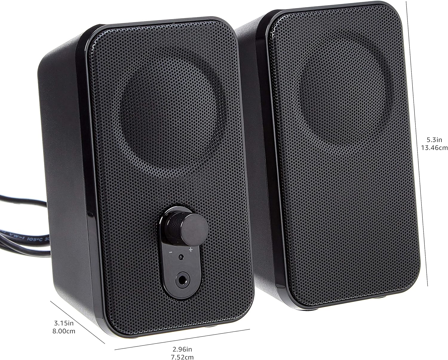 Amazon Basics Computer Speakers for Desktop or Laptop PC, AC-Powered (US Version), Black