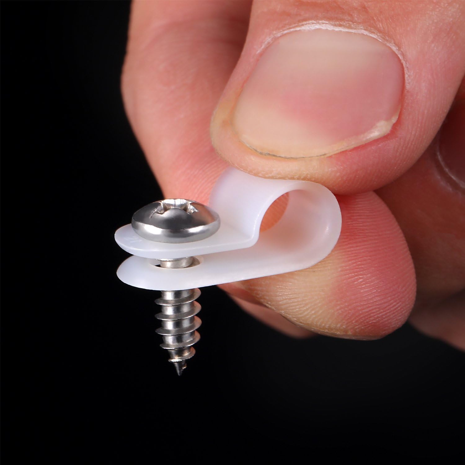 Hicarer 50 Pack R-Type Cable Clip Wire Clamp, Nylon Screw Mounting Cord Fastener Clips with 50 Pack Screws for Wire Management (White, 1/4 Inch)