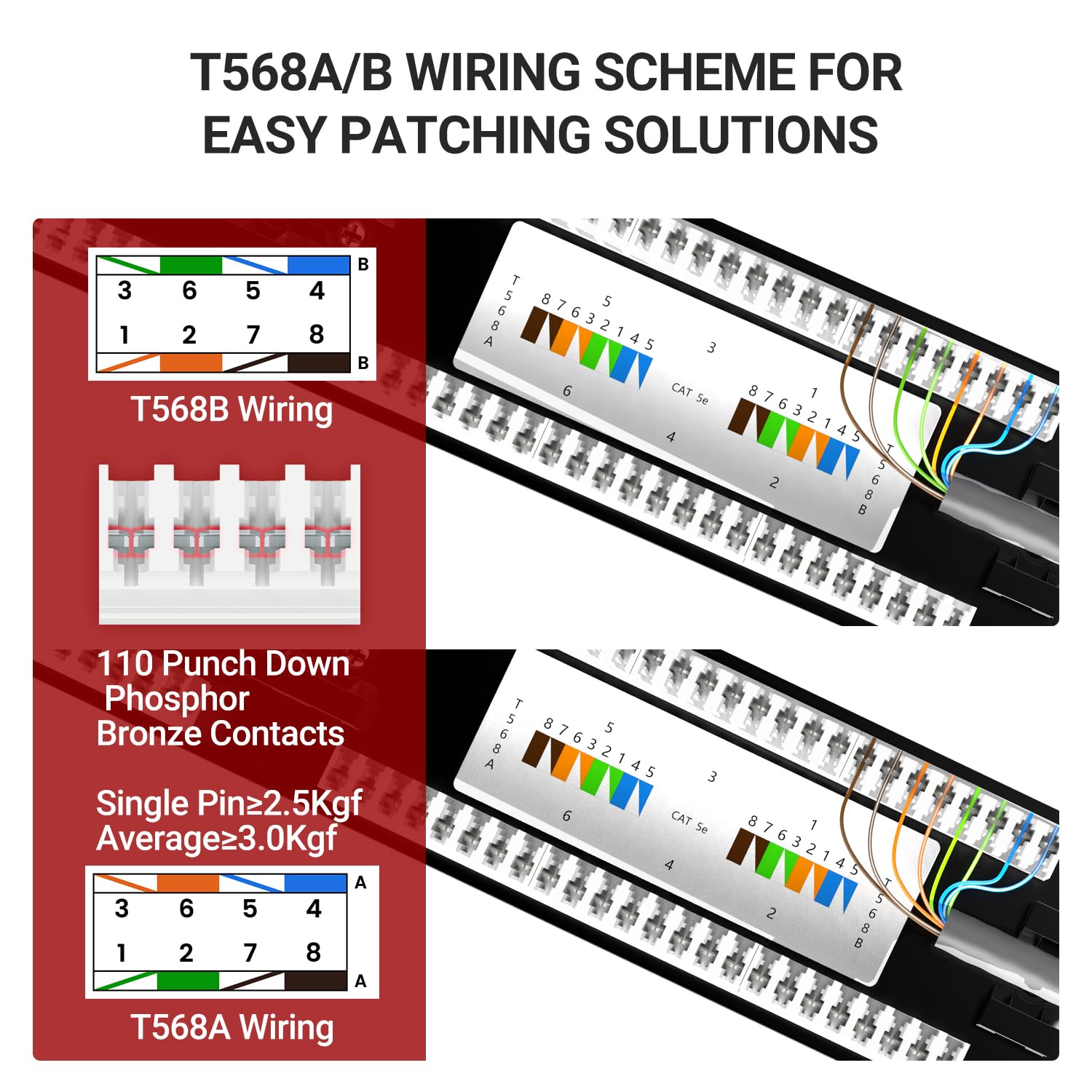 - Cat5e 24 port patch panel for 100/1000 Mbps networking, accept 23-26 AWG Cat5e/Cat5 solid and stranded UTP cables