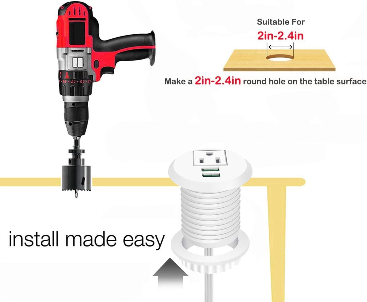 - This USB Power Grommet is Easy to Assemble:Fits 2'' - 2.4'' hole.Use 2" - 2.4''hole saw for installation,then insert the power grommet through.